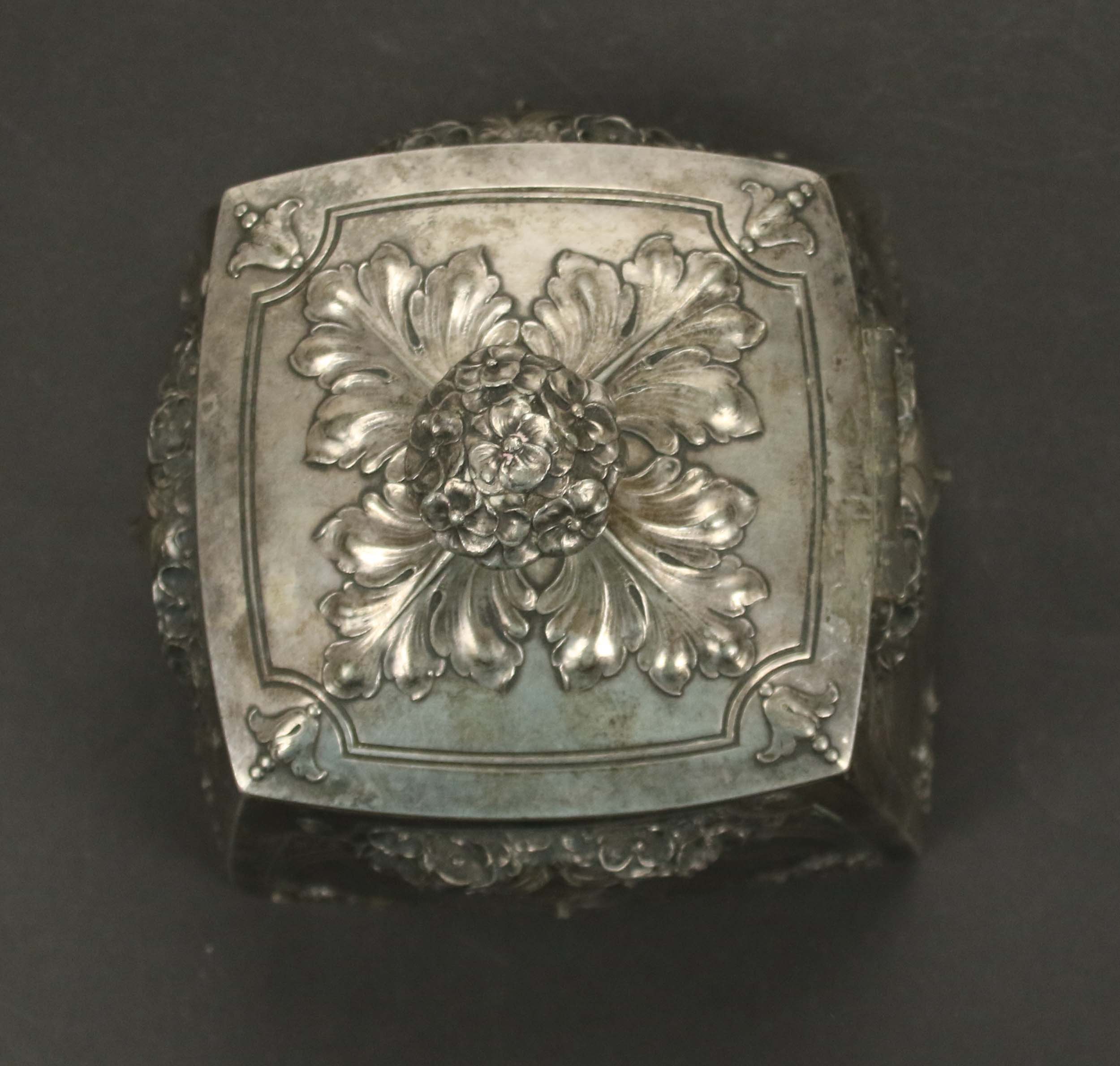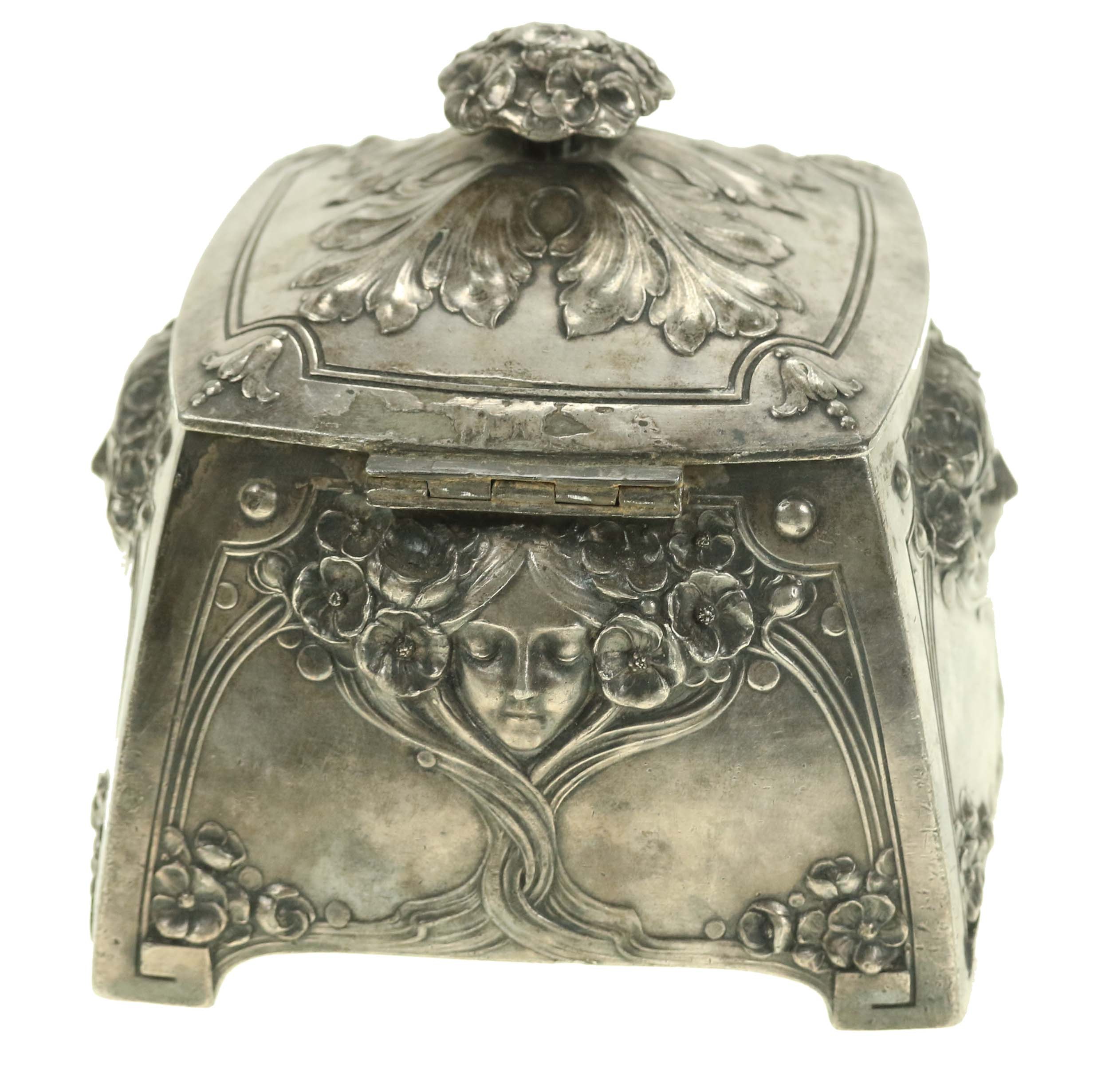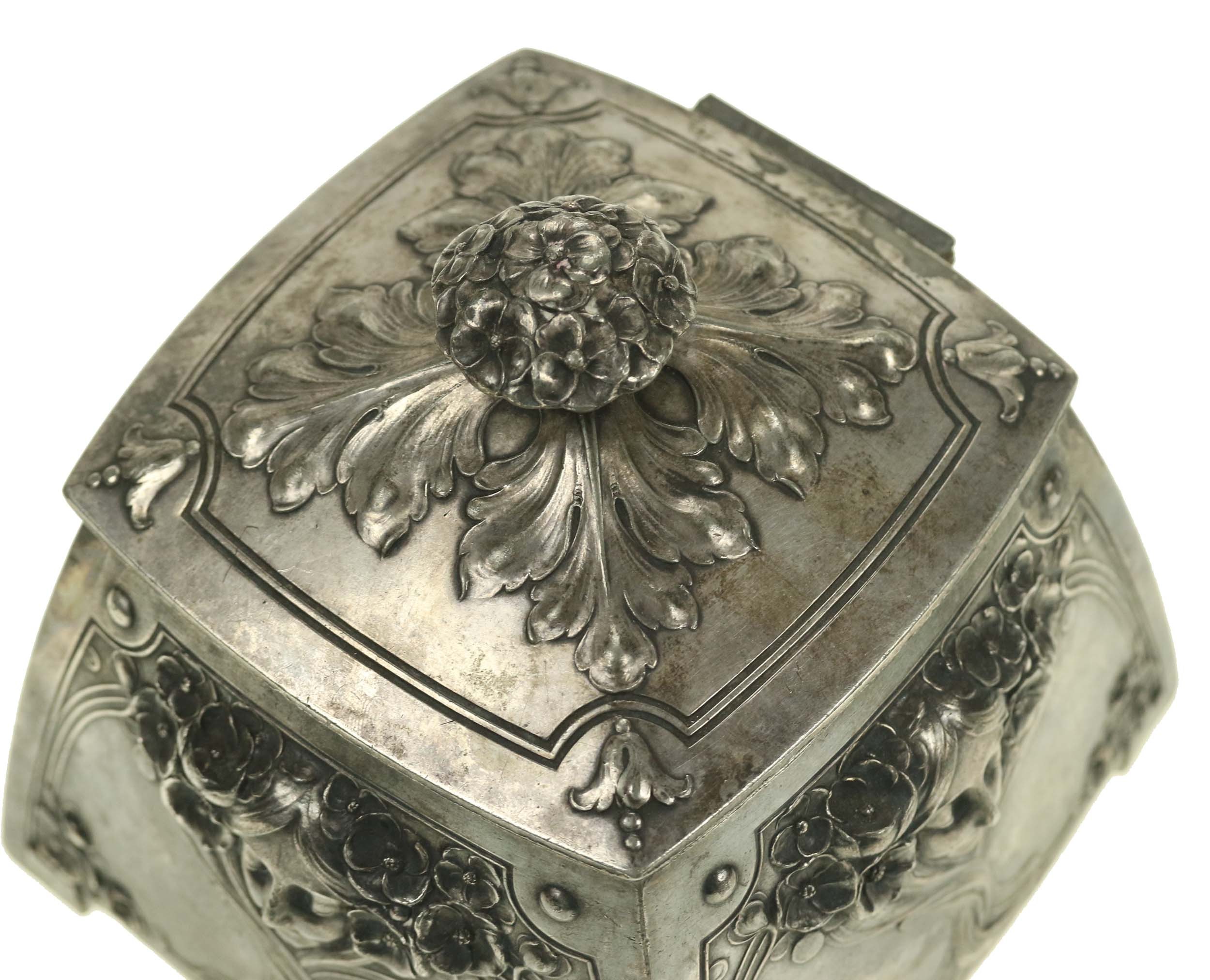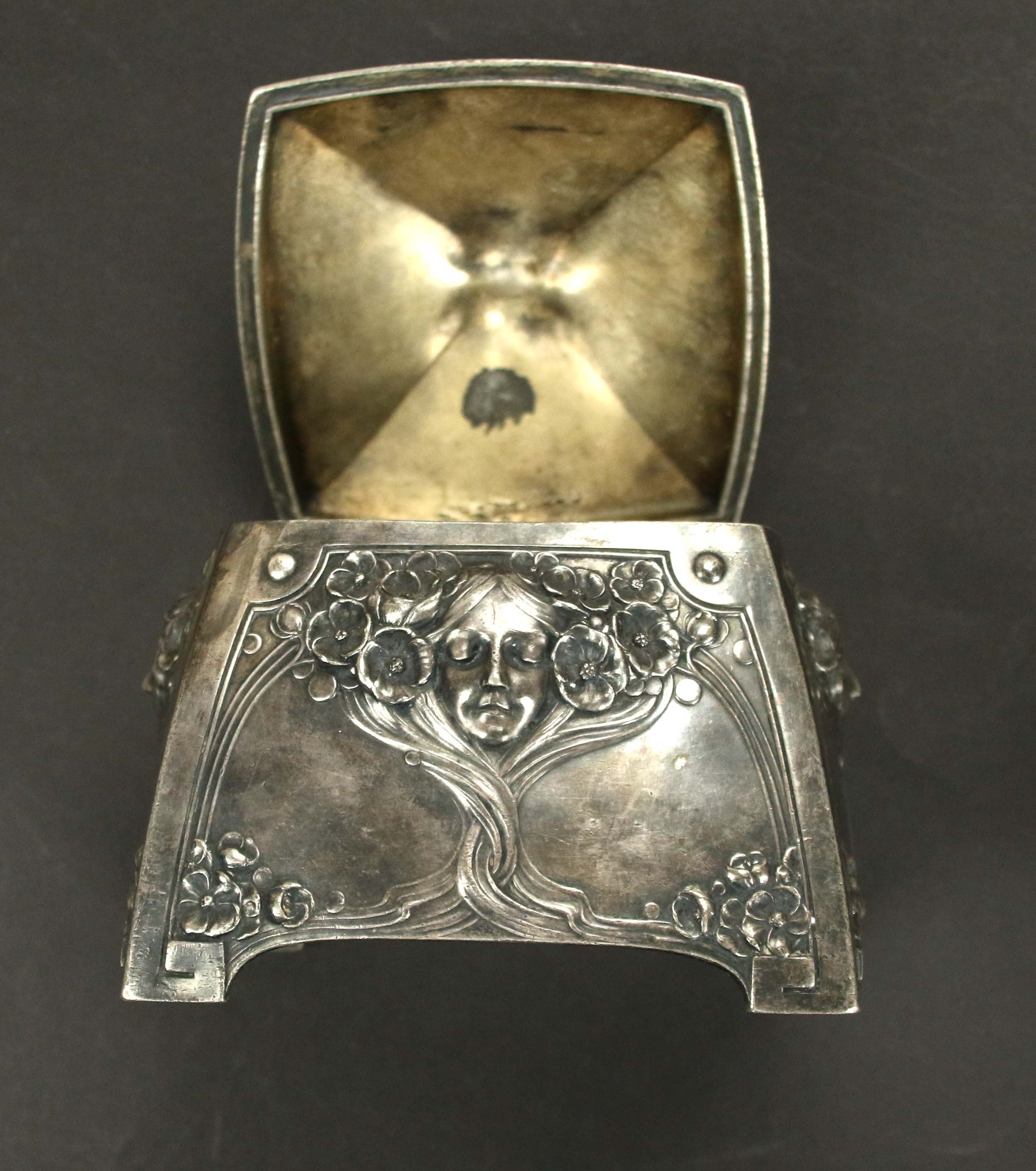 motywem otoczonej kwiatami kobiecej głowy, pokrywa na zawiasie,