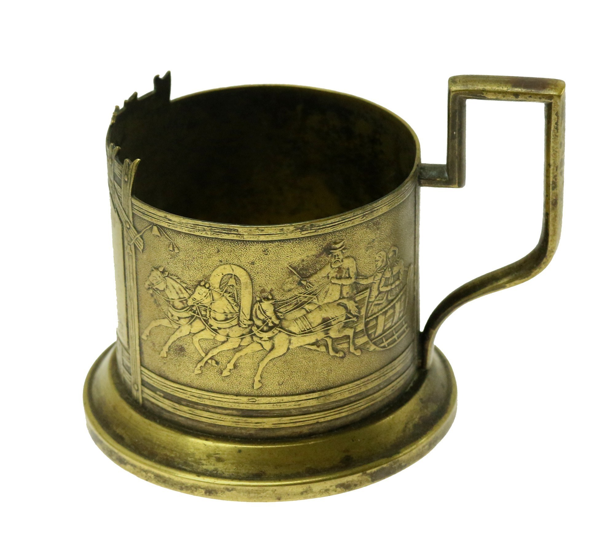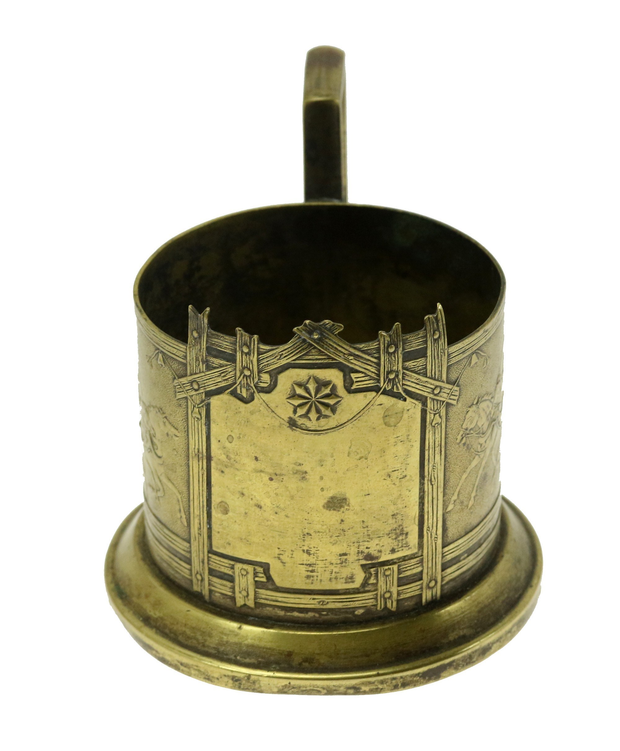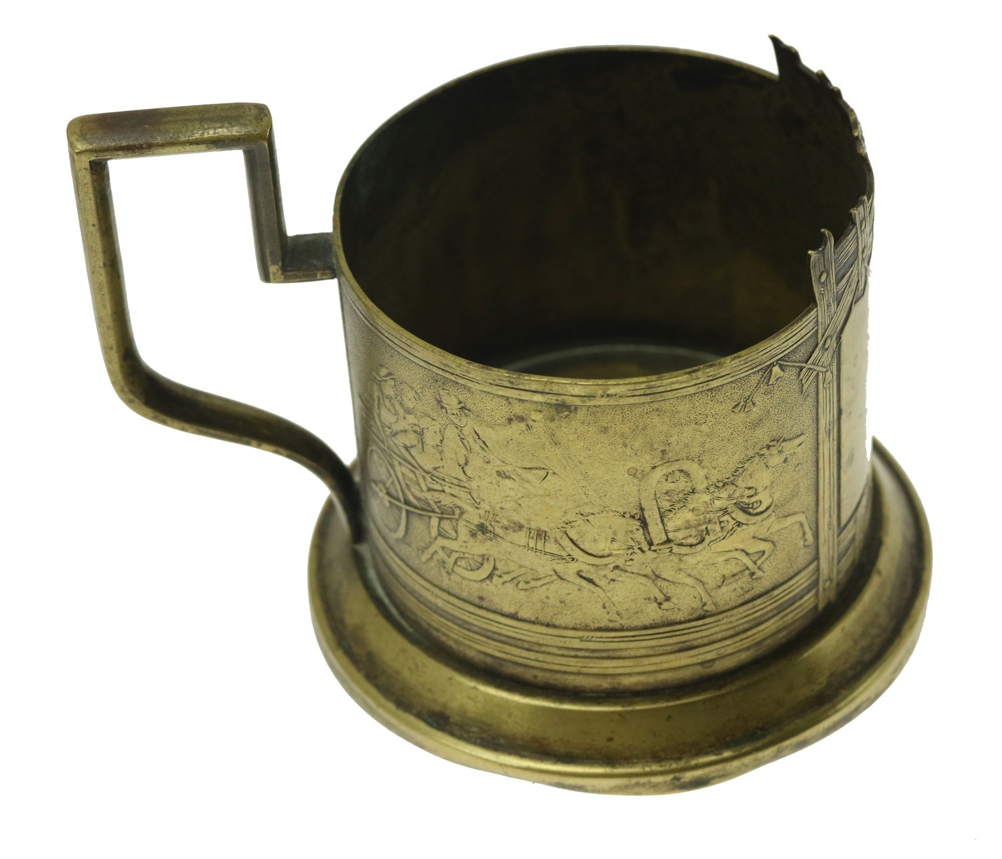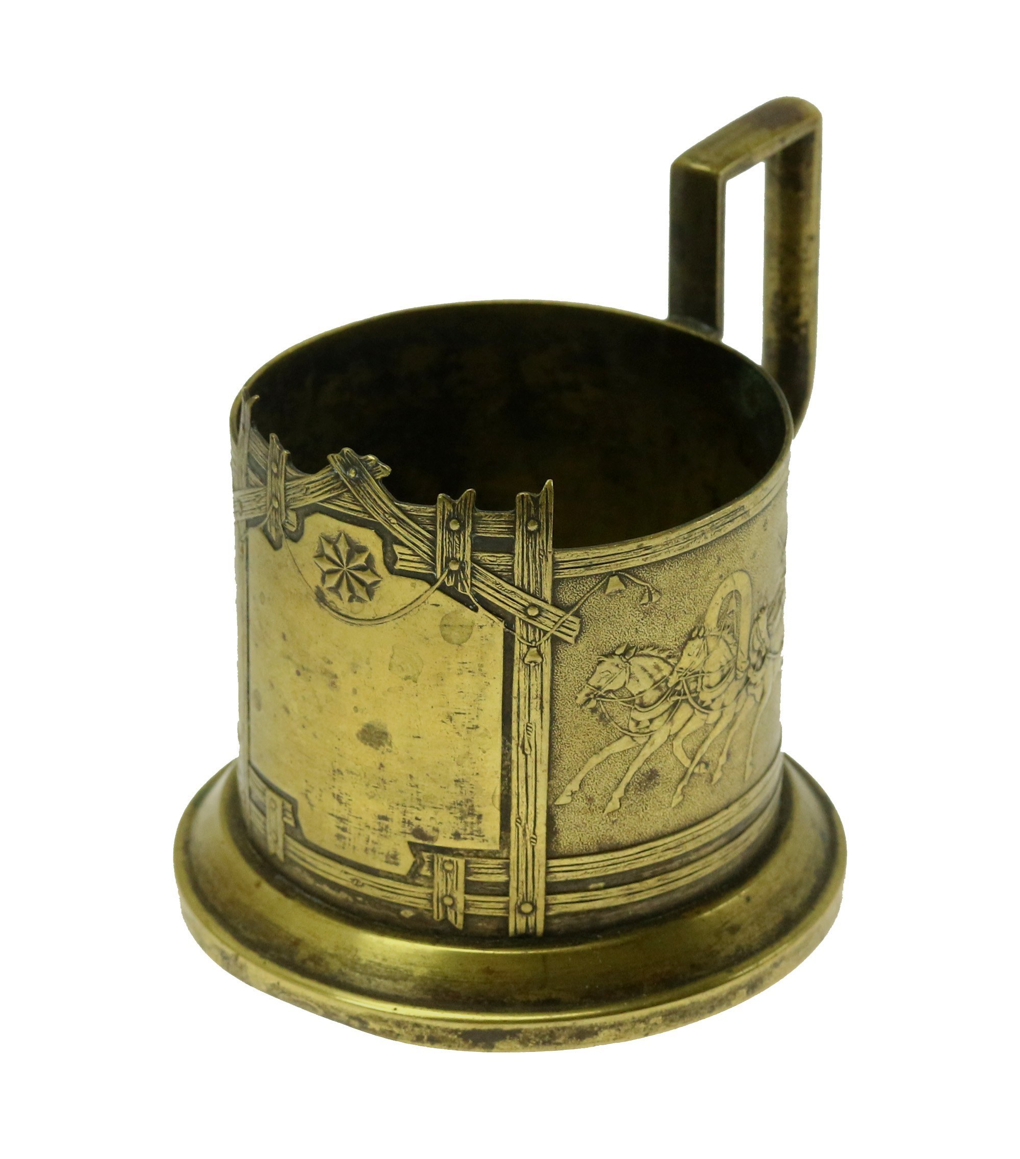 Koszyk na szklankę. Plater. Fabryka Wolska pod Warszawą XIX / XX w. Wysokość z uchem 9 cm. Średnica podstawy 9 cm. Stan zachowania bardzo dobry.