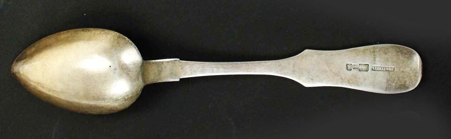 Łyżka, Wilno XIX w. Srebro. Wileńska cecha srebra oraz sygnatura wytwórcy. Długość długość łyżki 22,5 cm.