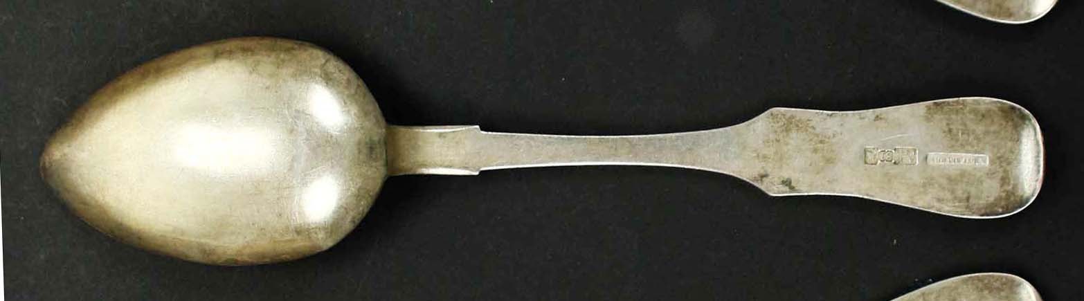 Łyżka, Wilno XIX w. Srebro. Wileńska cecha srebra oraz sygnatura wytwórcy. Długość długość łyżki 22,5 cm.