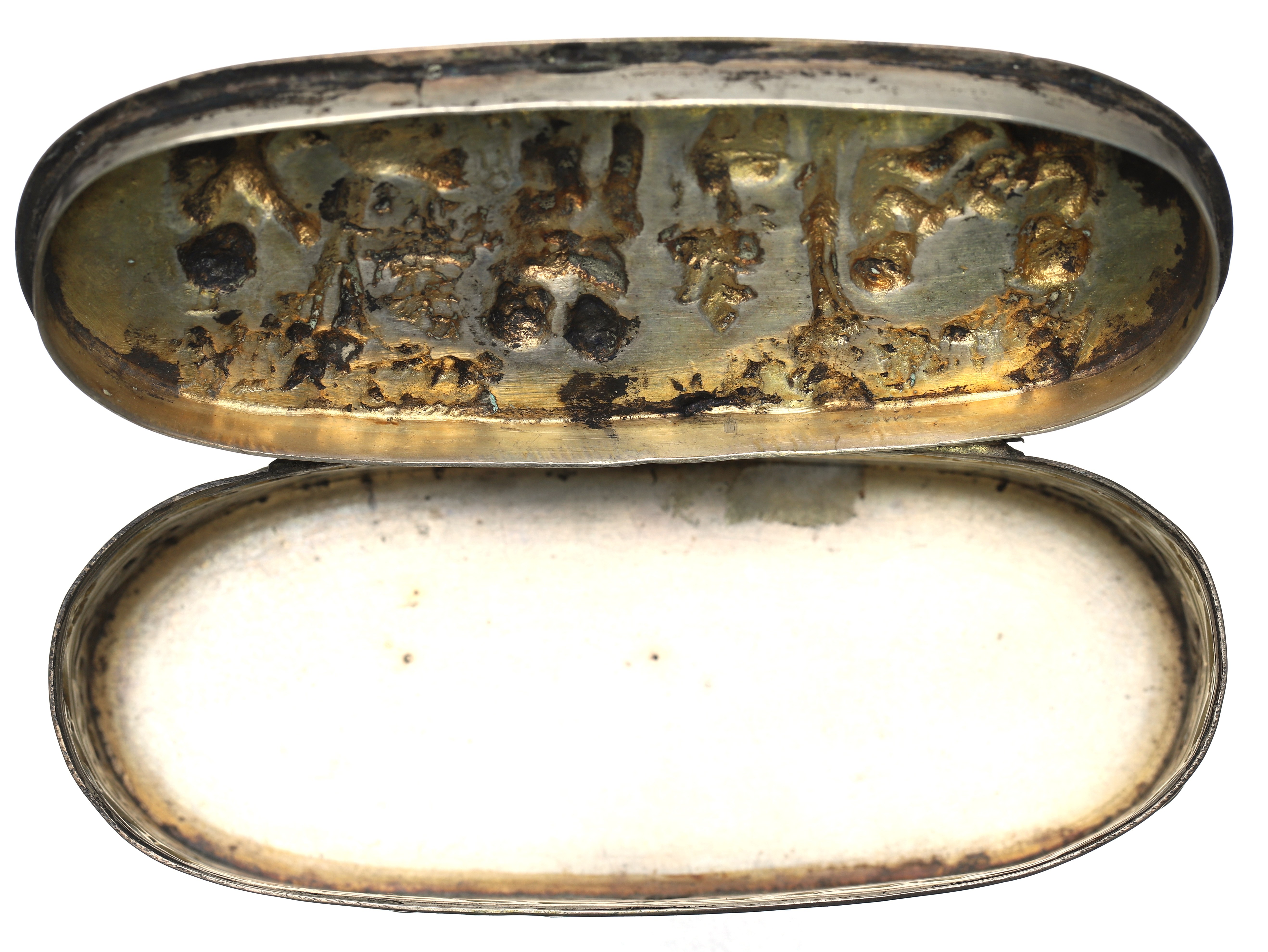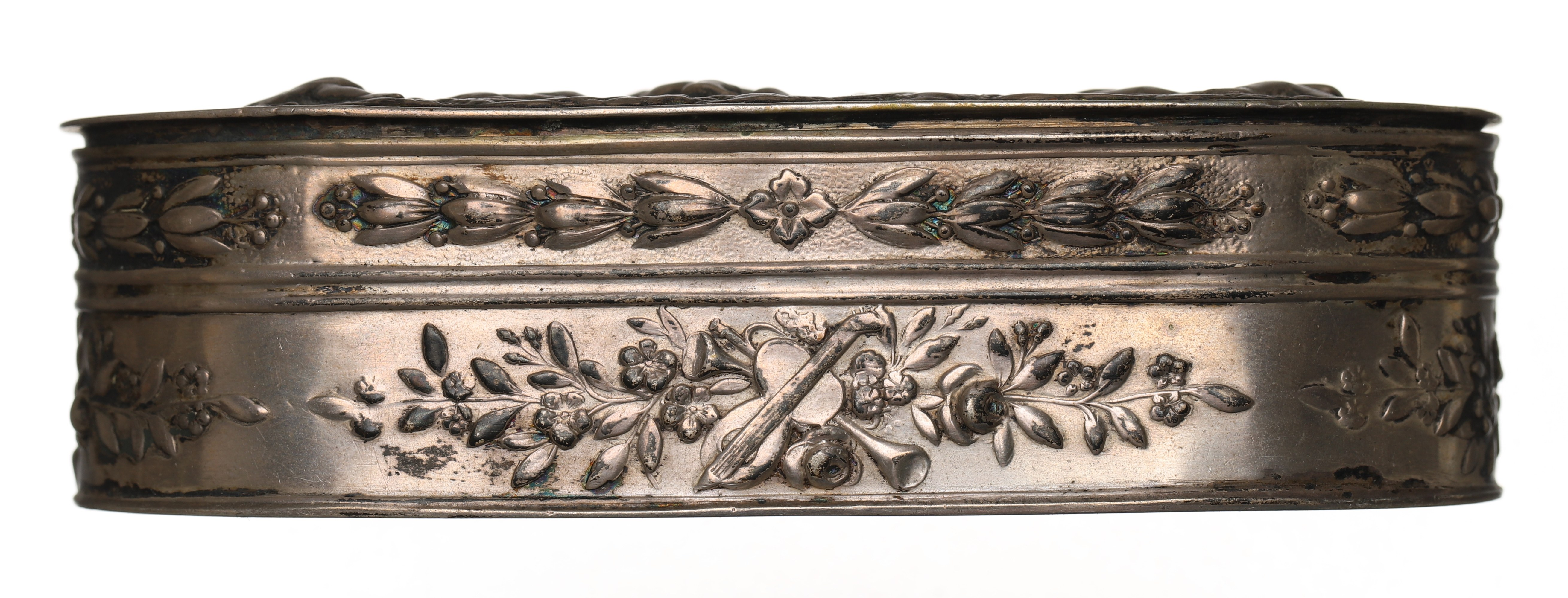 Piękna tabakierka z przedstawieniami figuralnymi.