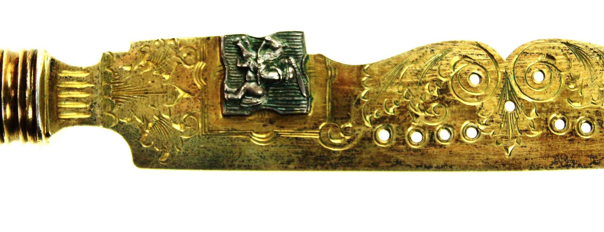 Sztućce nawiązują do form późnomanierystycznych. Wyroby tego typu powstawały w XIX w. na zamówienie rodów do dekoracji stołu.
