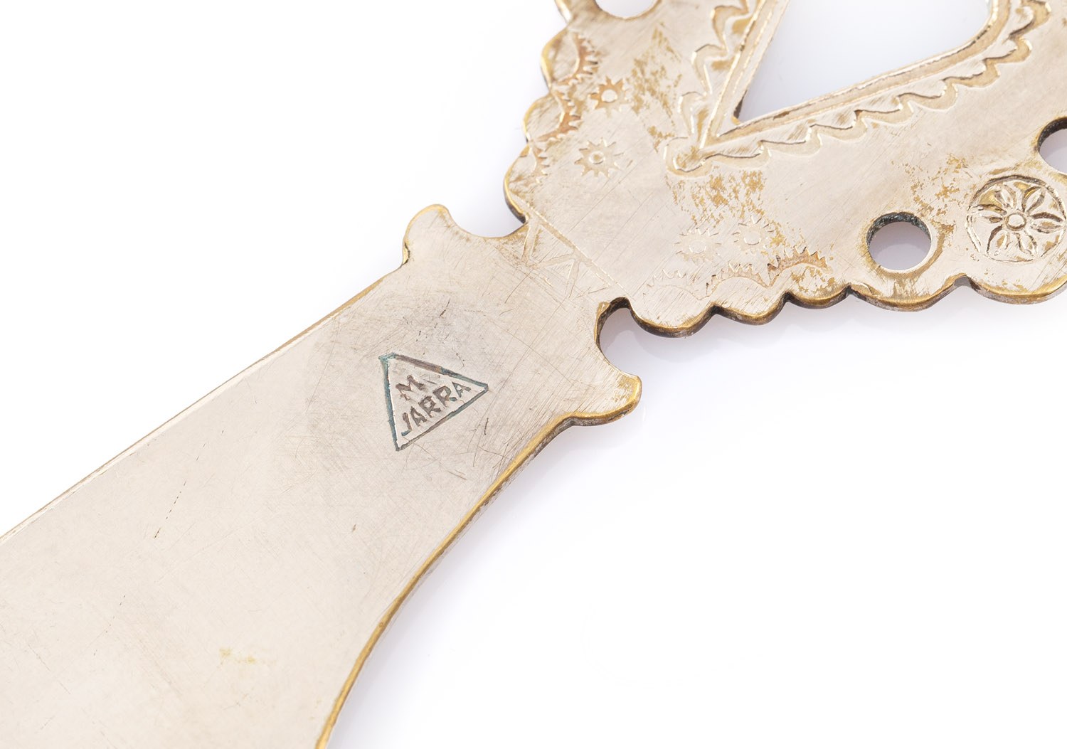 oznaczenie wytwórni napis wersalikami w trójkącie: 'M | JARRA'