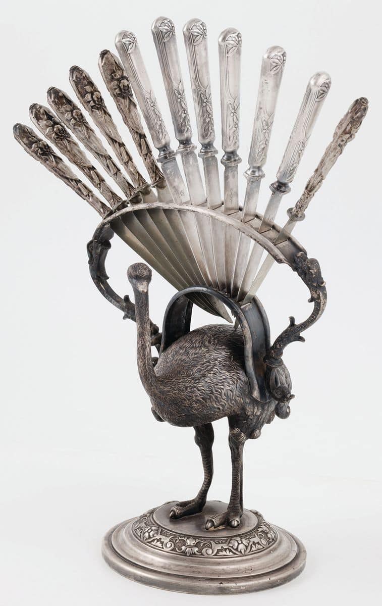PODSTAWKA NA NOŻYKI W FORMIE STRUSIA, Polska, Warszawa, Fraget, XIX / XX w.