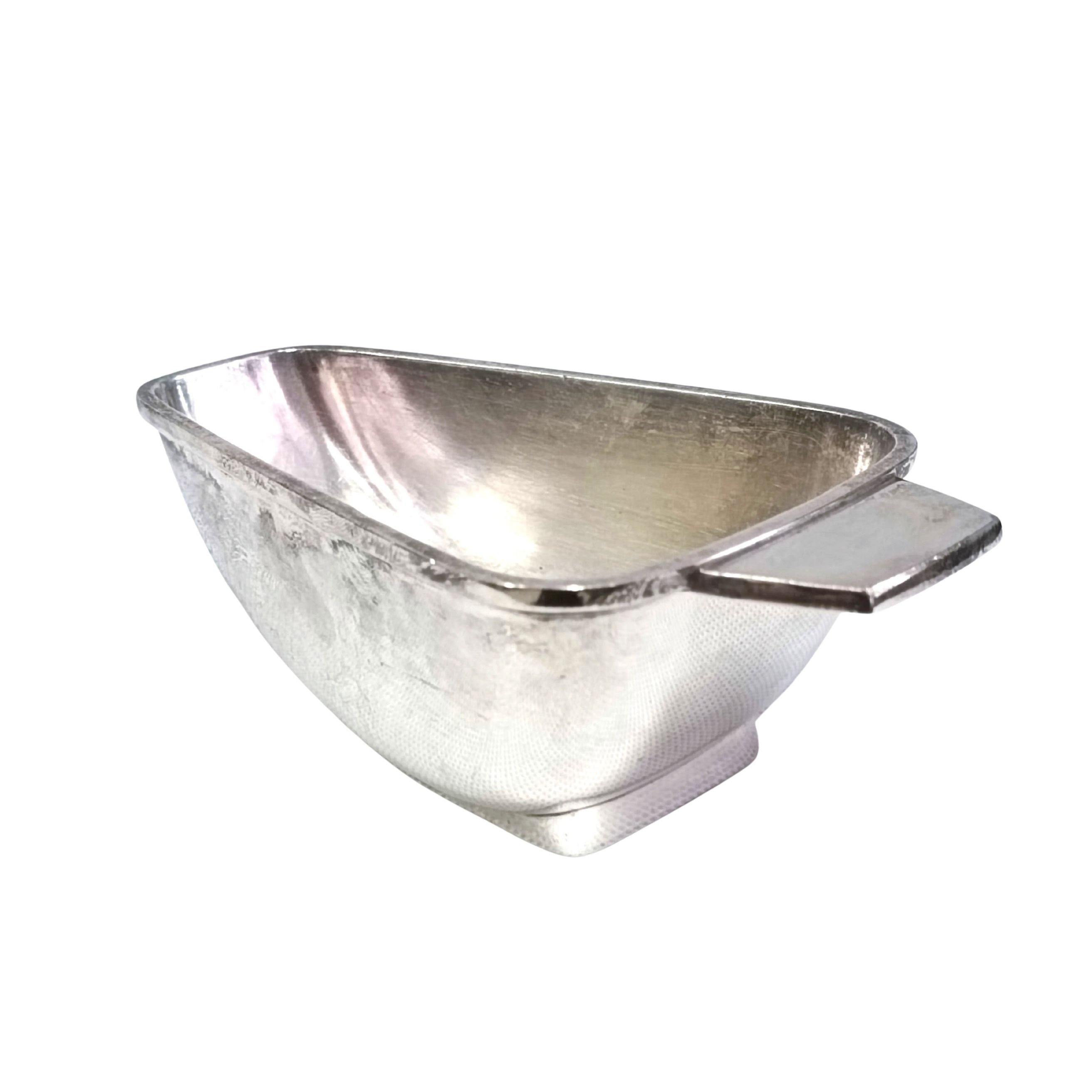 Elegancka, posrebrzana sosjerka z francuskiego atelier Ercuis. Sygnatura oraz punca producenta na rączce. Stan dobry, niewielkie przetarcia/ślady użytkowania.