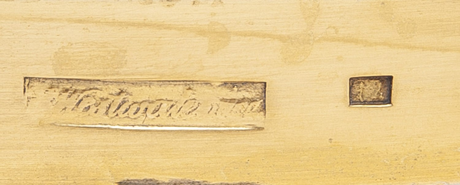 oznaczenie na spodzie i na krawędzi stopy i na spodzie wkładu: złotnik 'SWestwalewicz' - Stanisław Westwalewicz czynny w Krakowie w latach 1821-1842, próba: '12'