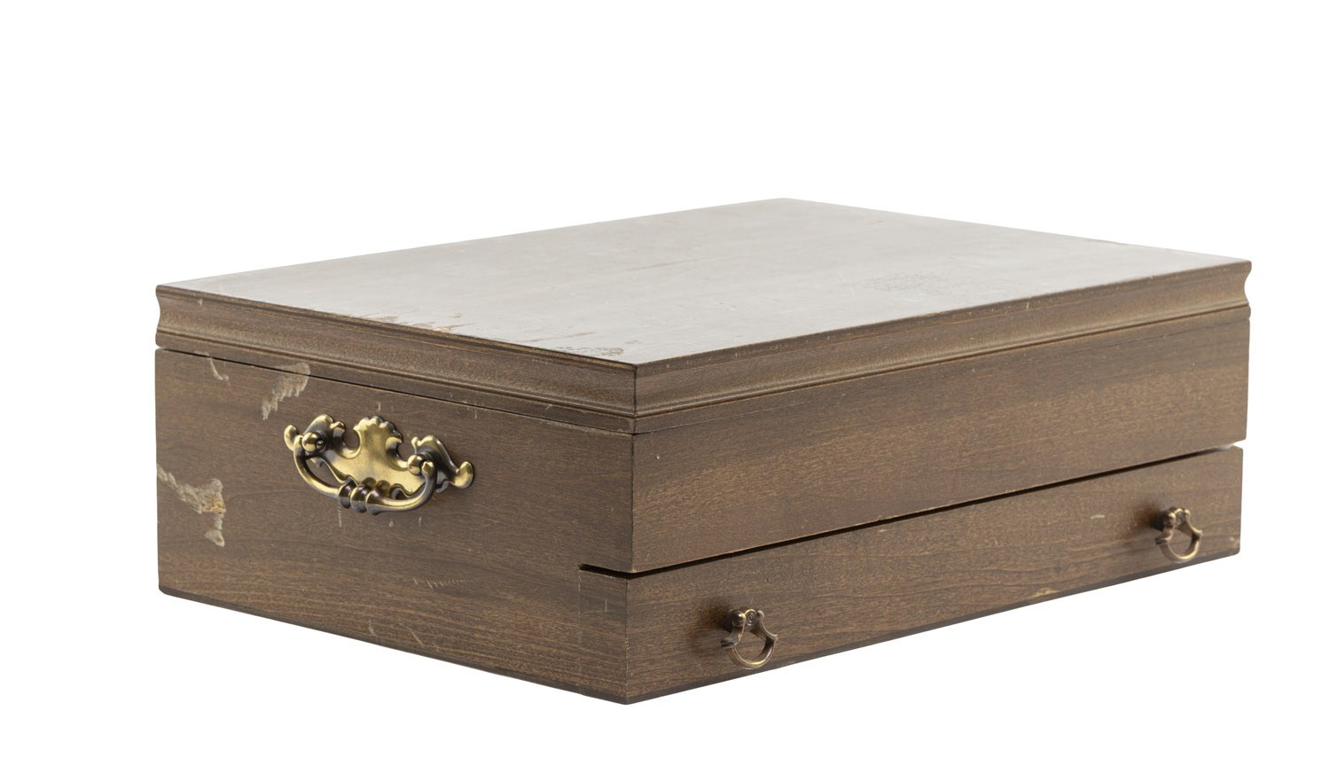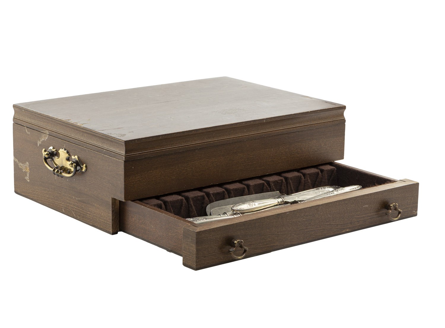 srebro pr. '3', ostrza stalowe, kaseta drewniana z mosiężnymi uchwytami