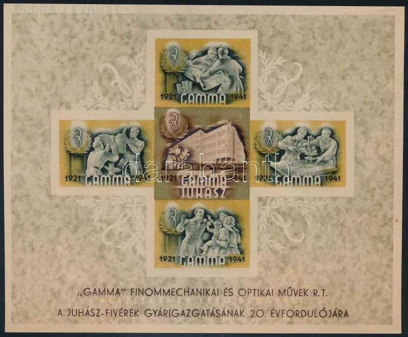 1941 A Légrády Sándor által tervezett Gamma levélzáró blokk próbanyomata / proof