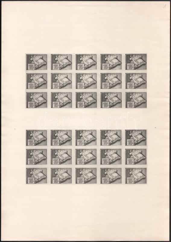 1959 3 db Légrády Sándor: 75 éves a LEHE levélzáró próbanyomat teljes ív 3 klf színben / Label proofs 3 complete sheets