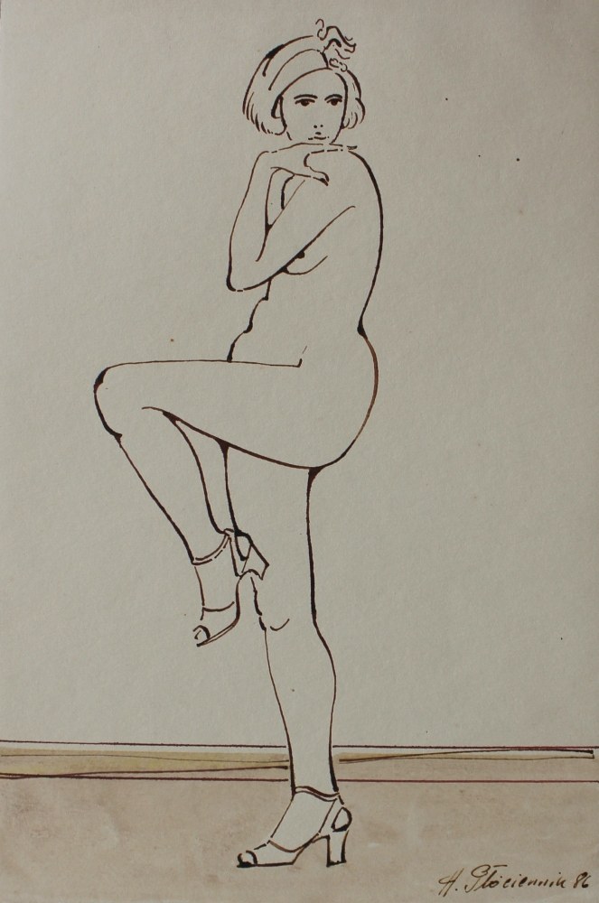 Akt na wysokich obcasach(1986) sygn.dat.p.d. H. Płócienik 86