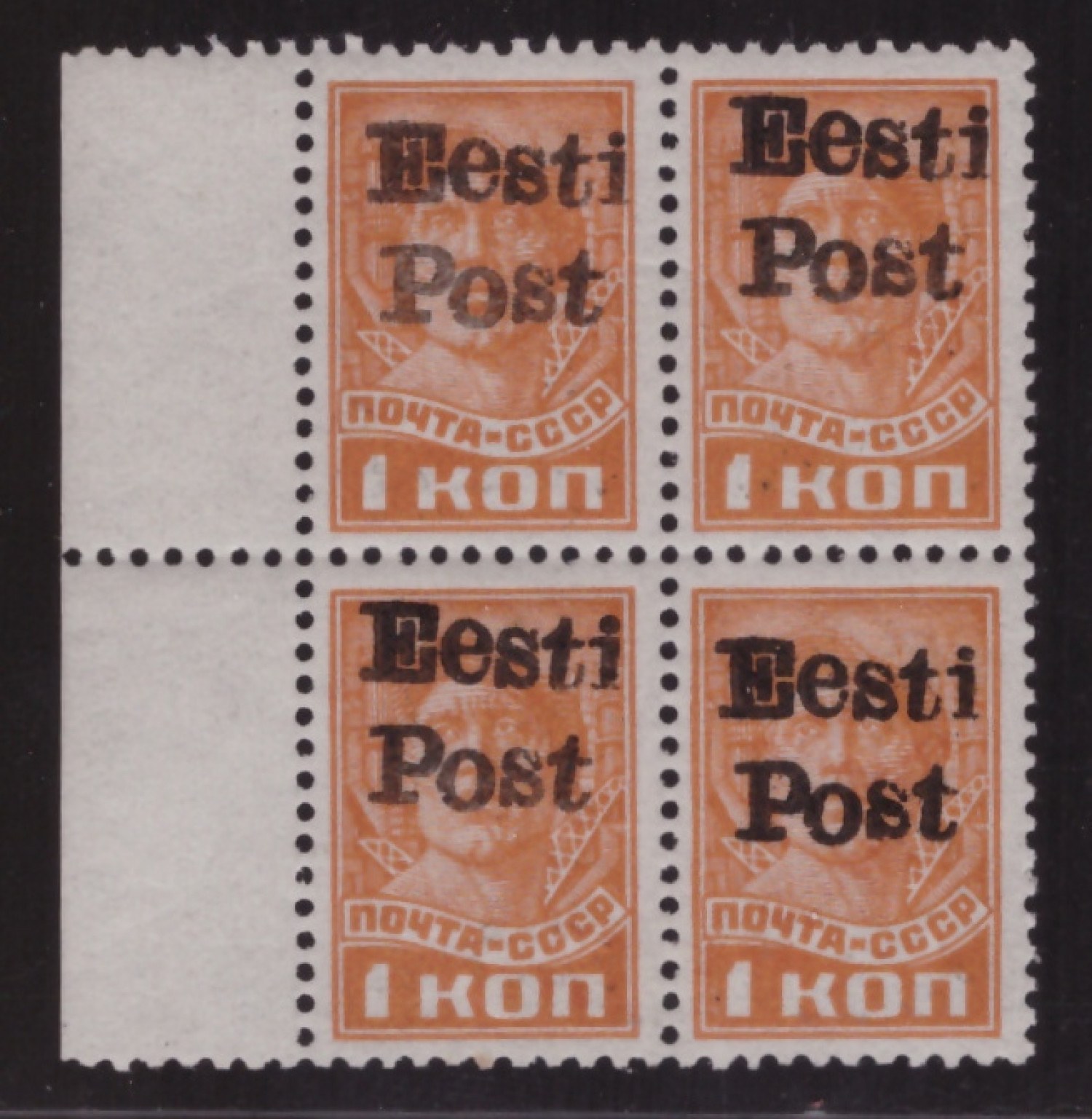 Estonia (Russia) - ELVA 1 Kop 4 block with Eesti Post overprint 1941 SIGNED