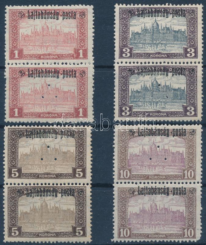 Nyugat-Magyarország III. 1921 4 klf pár, mindegyikből egy érték hármaslyukasztással (26.700) / 4 pairs, 1...