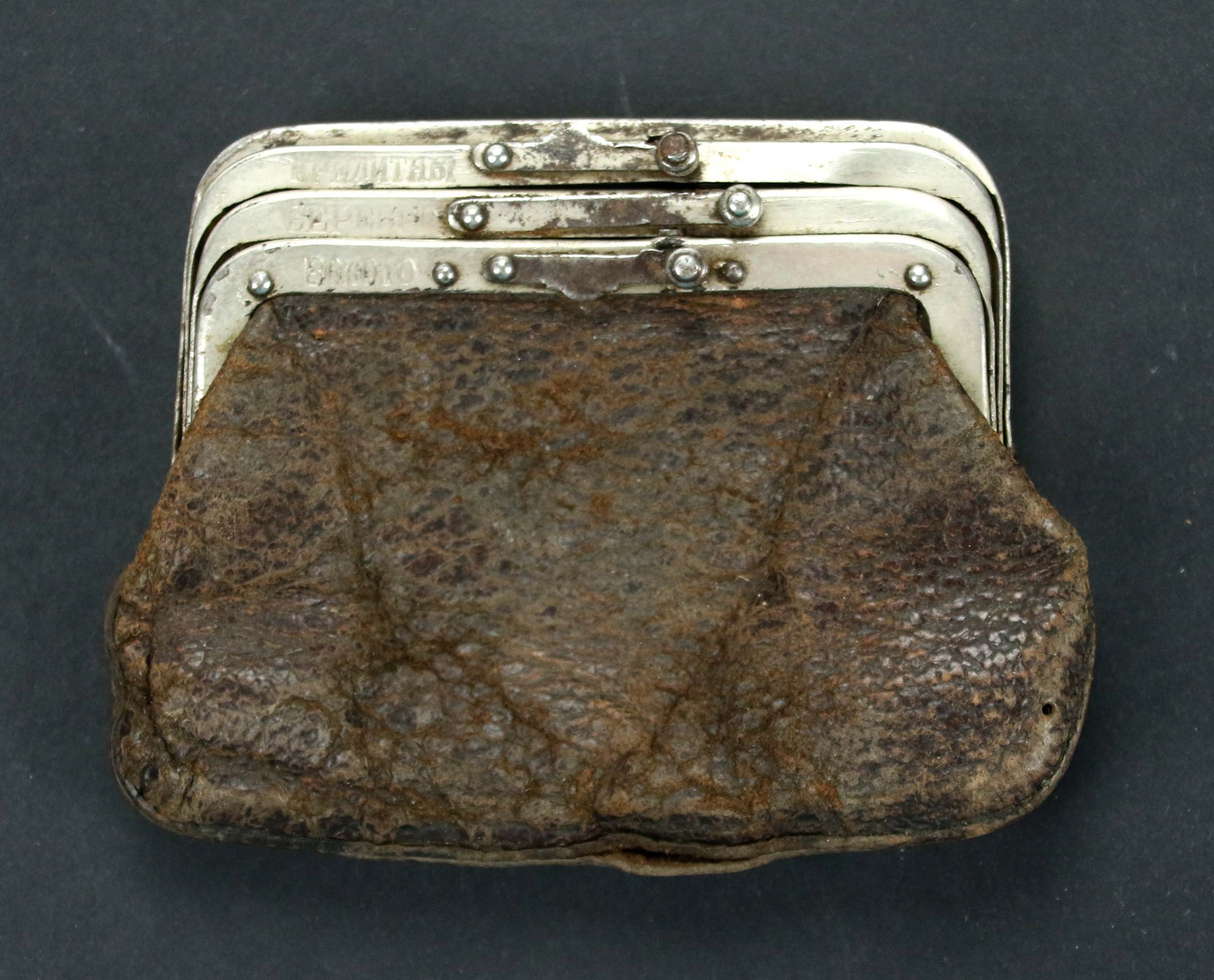 Portmonetka na monety i banknoty, Rosja 1900. Metal srebrzony, wym. 11 x 8 cm.