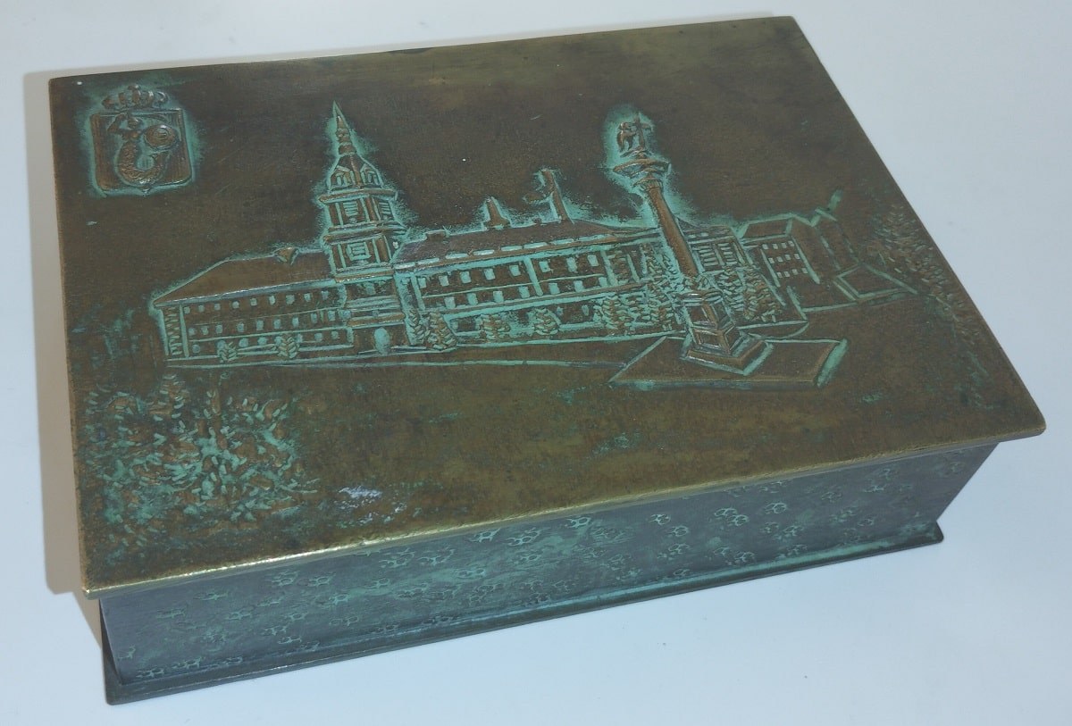 Brąz, wewnątrz drewno; 4,2 x 15,5 x 10,8 cm