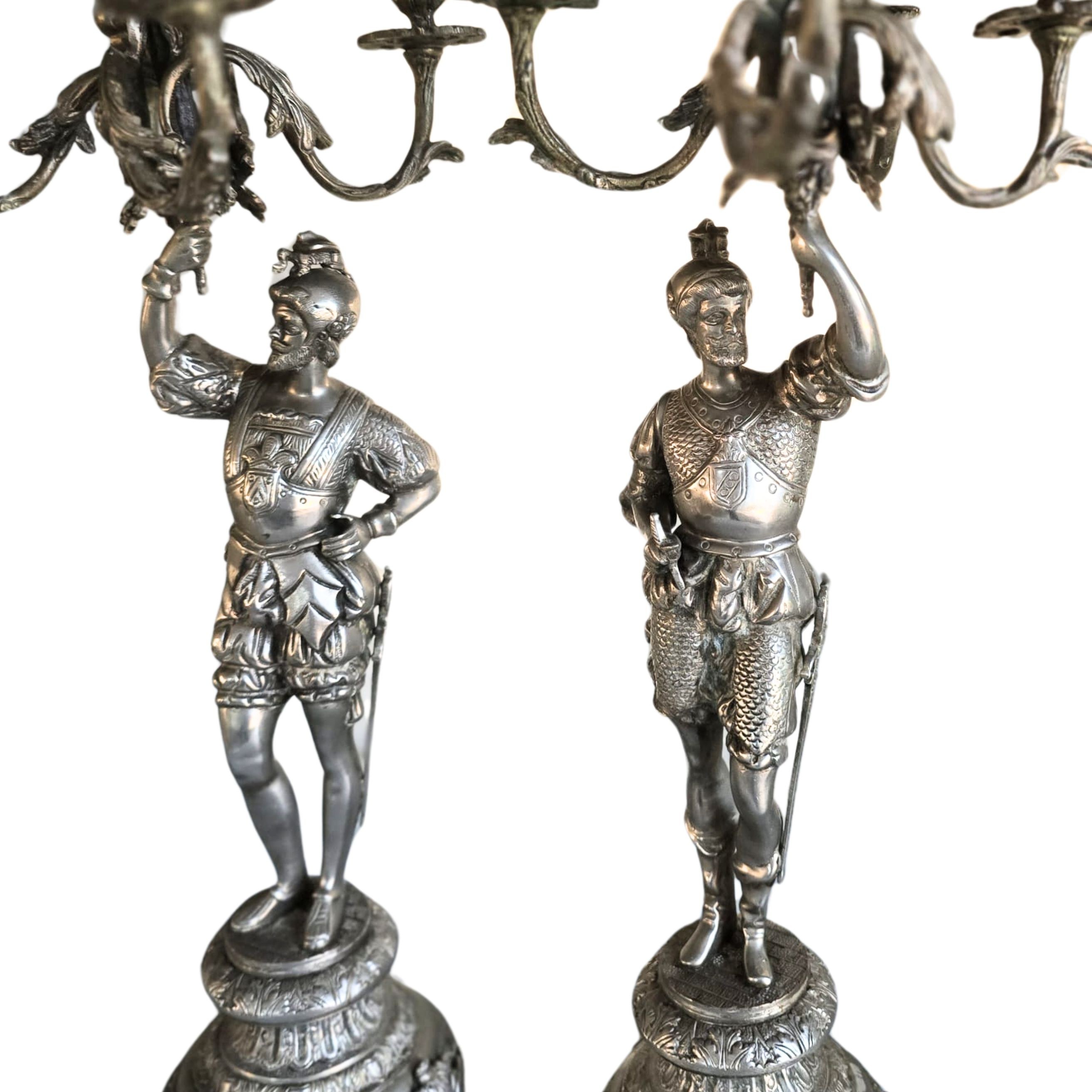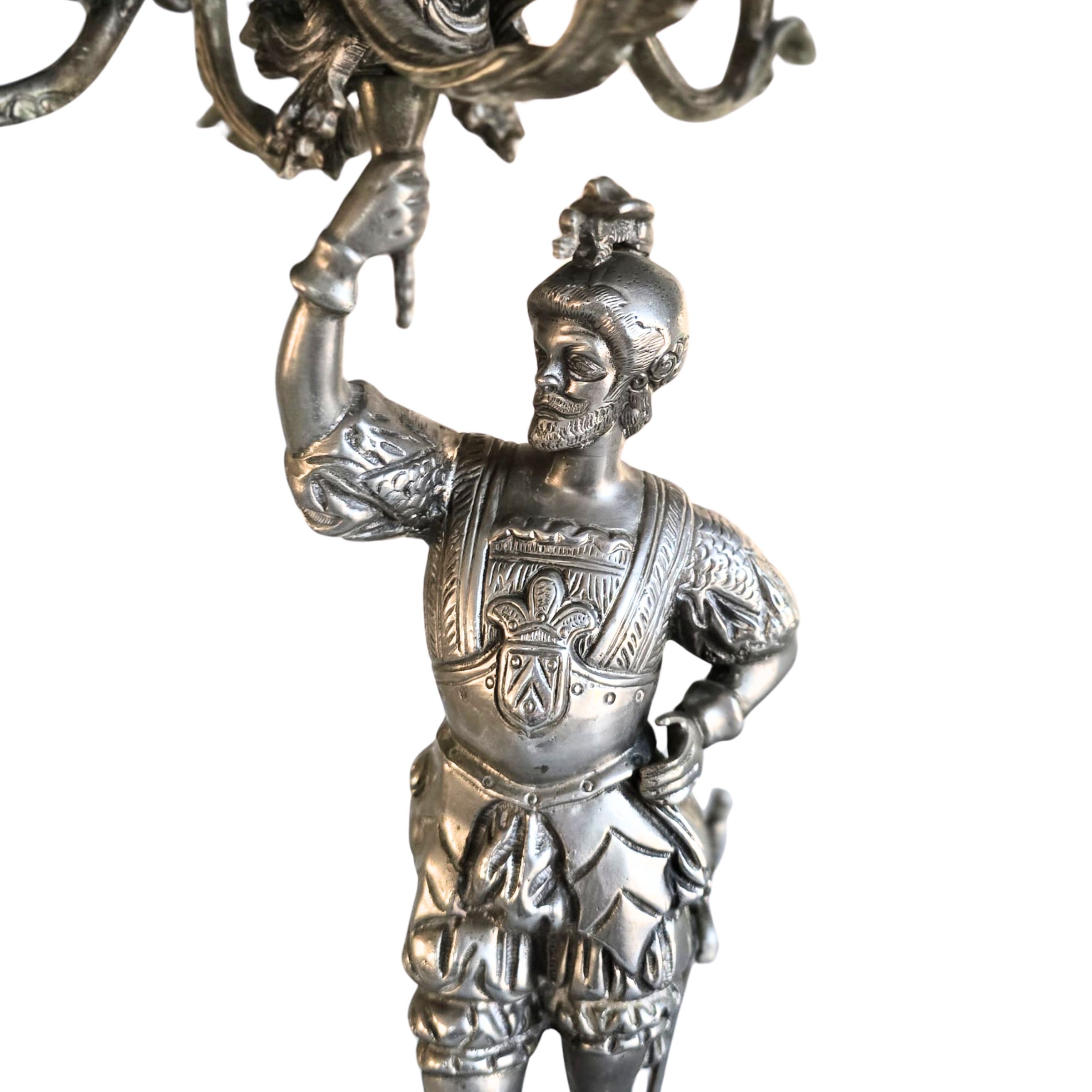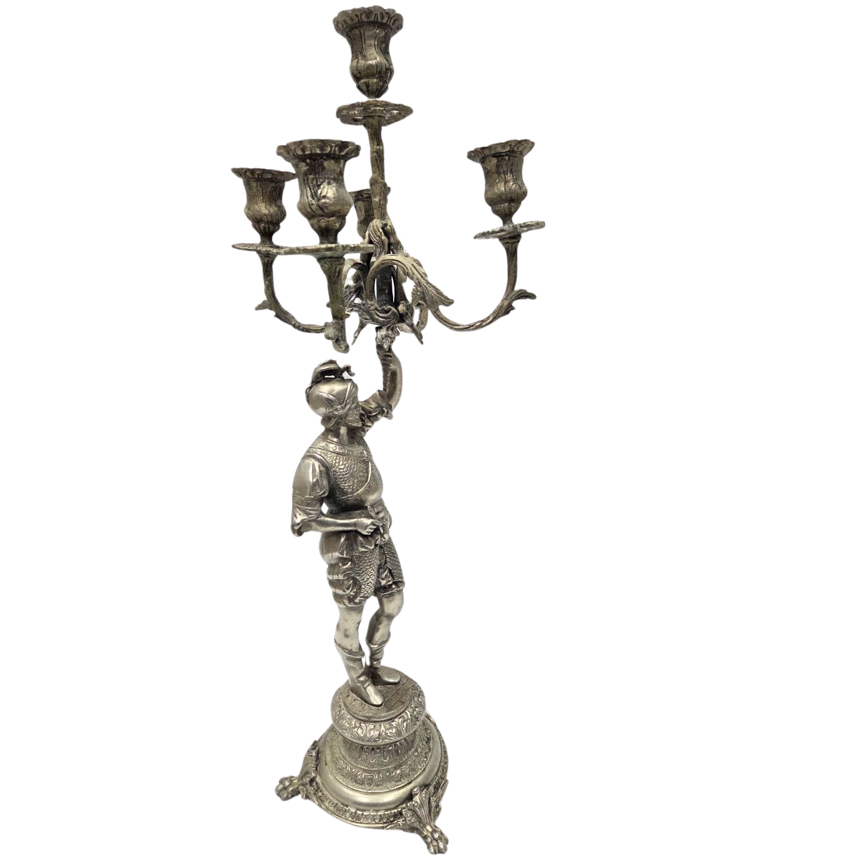 Para dużych świeczników/kandelabr figuratywny, podstawa w formie postaci mężczyzny w ozdobnej zbroi (konkwistador ?).