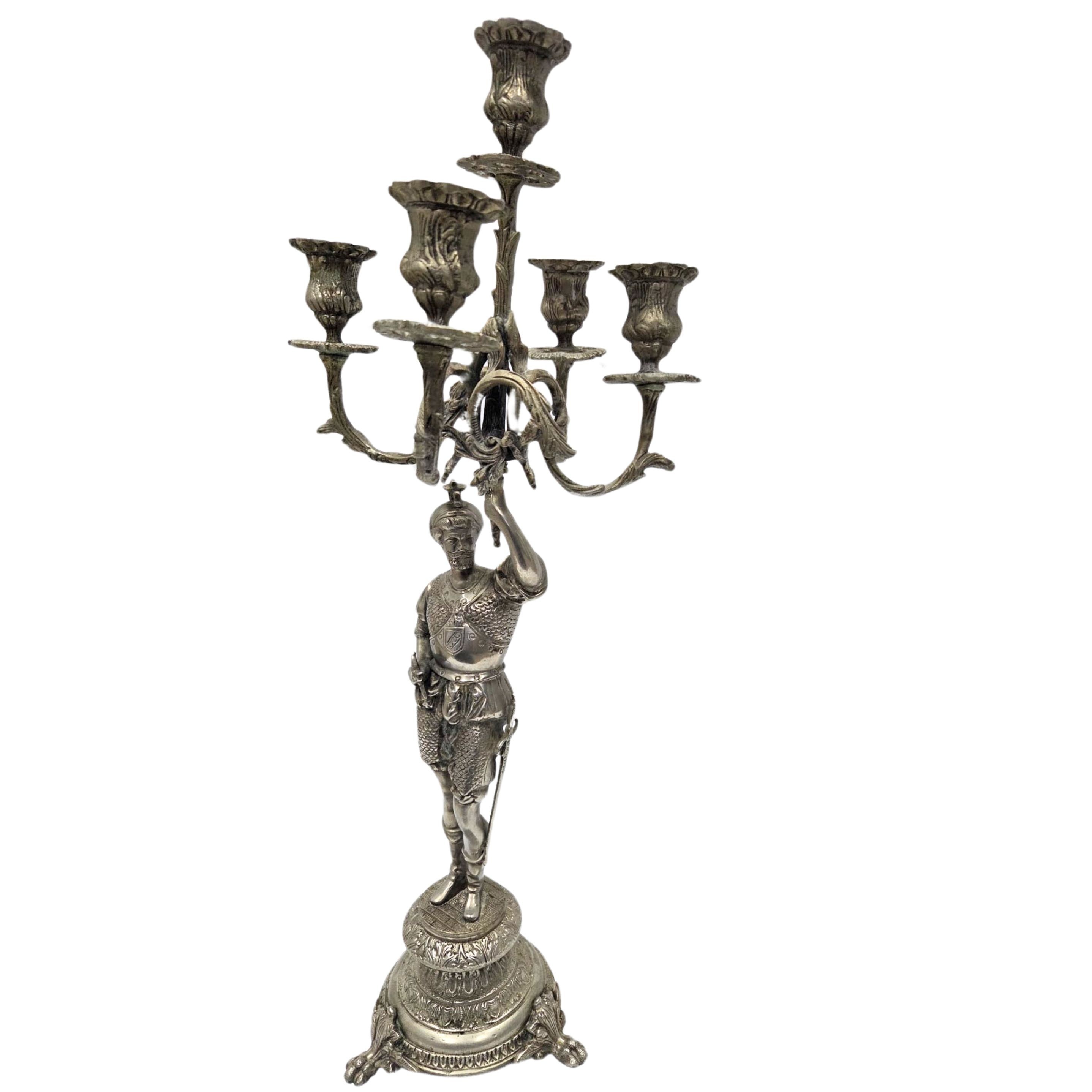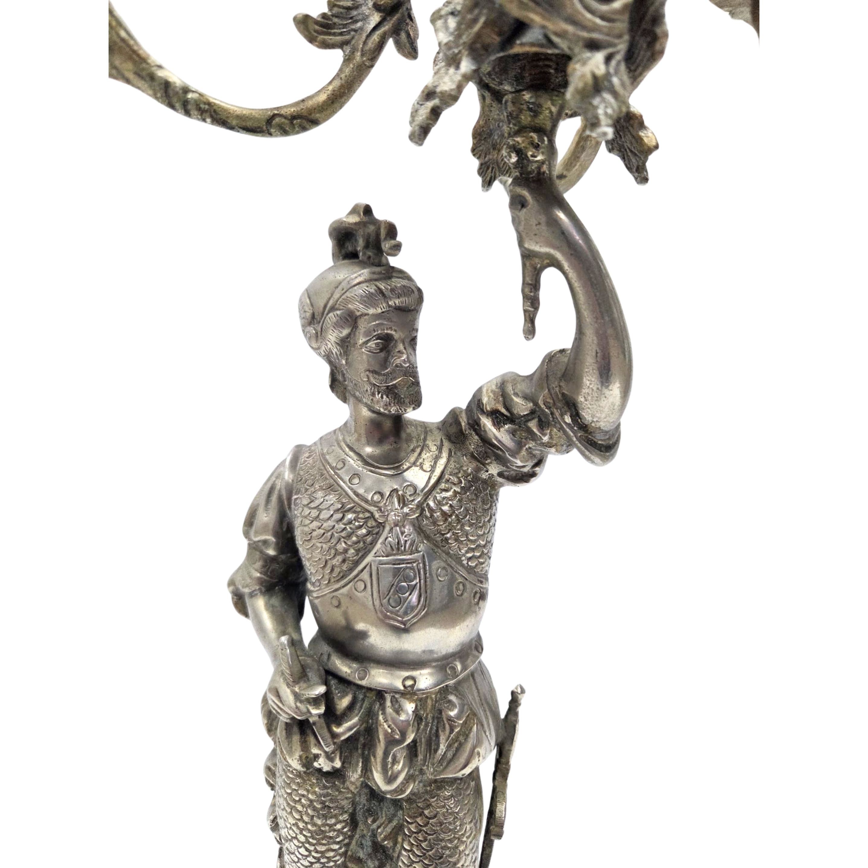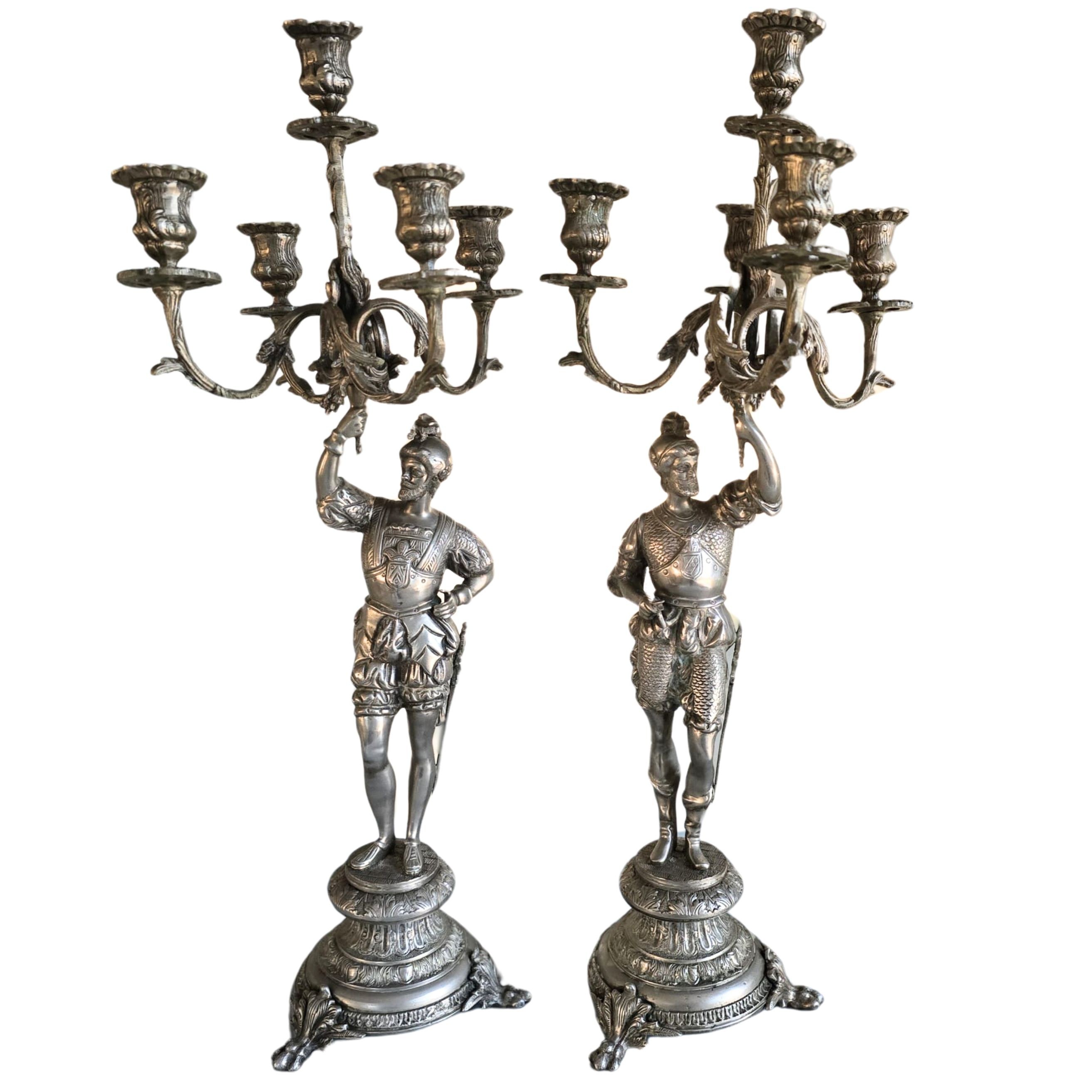 Para dużych świeczników/kandelabr figuratywny, podstawa w formie postaci mężczyzny w ozdobnej zbroi (konkwistador ?).
