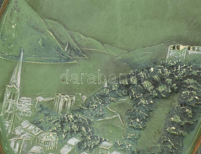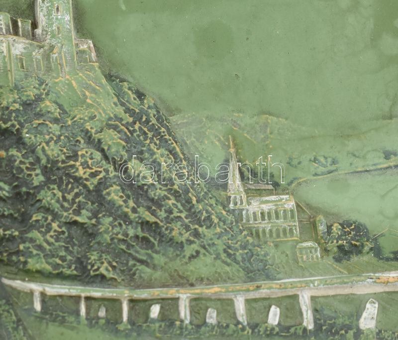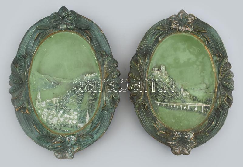 2 db fajansz kép, falra akasztható, jelzés nélkül, erős kopásokkal, 1900 körül, 24x18 cm