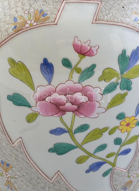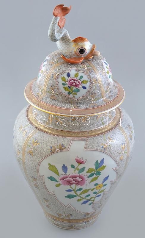 Antik Herendi Cubas (CU) mintás dísz váza, kézzel festett porcelán, jelzett, kopásnyomokkal, a hal farka, szépen restaurált, m: 38 cm
