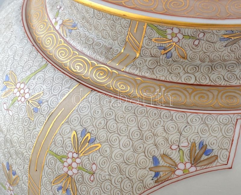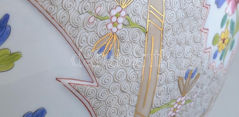 Antik Herendi Cubas (CU) mintás dísz váza, kézzel festett porcelán, jelzett, kopásnyomokkal, a hal farka...
