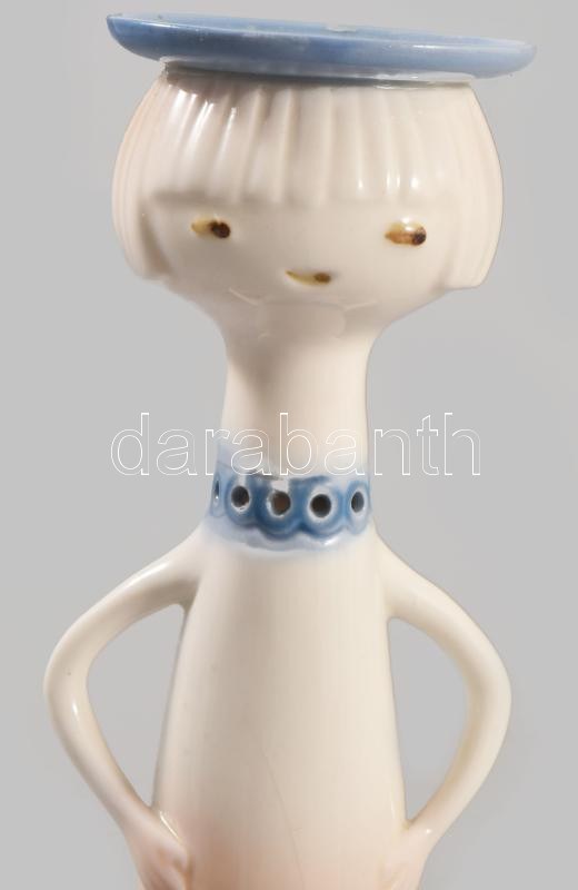 Aquincum aquazur gyertyatartó leányka. Kézzel festett, jelzett, hibátlan. terv: Őz-Szabó Antónia.16 cm //...