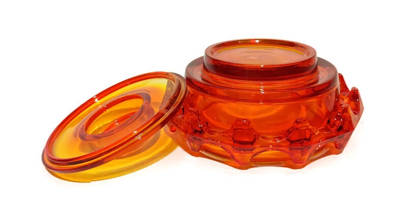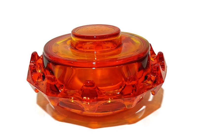 ubytek na wewnętrznym, dolnym rancie pokrywki (ok 1cm), mały odprysk na rancie dolnego elementu