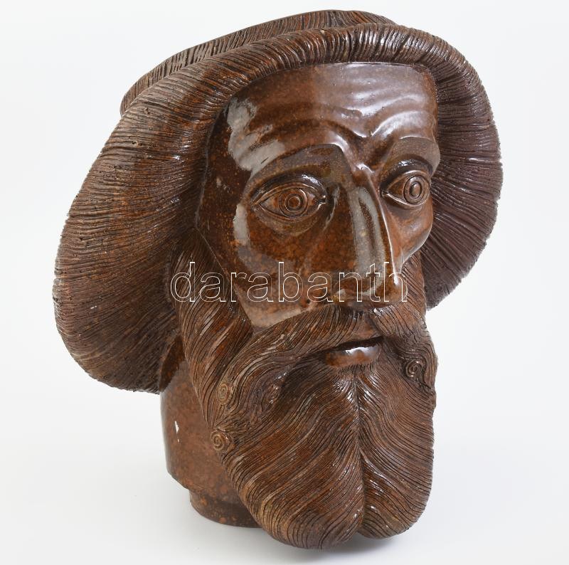 Borsódy László (1938- ): Szent László király. Mázas kerámia, jelzett, B.L. 1985. 5/2. 28x26x31 cm