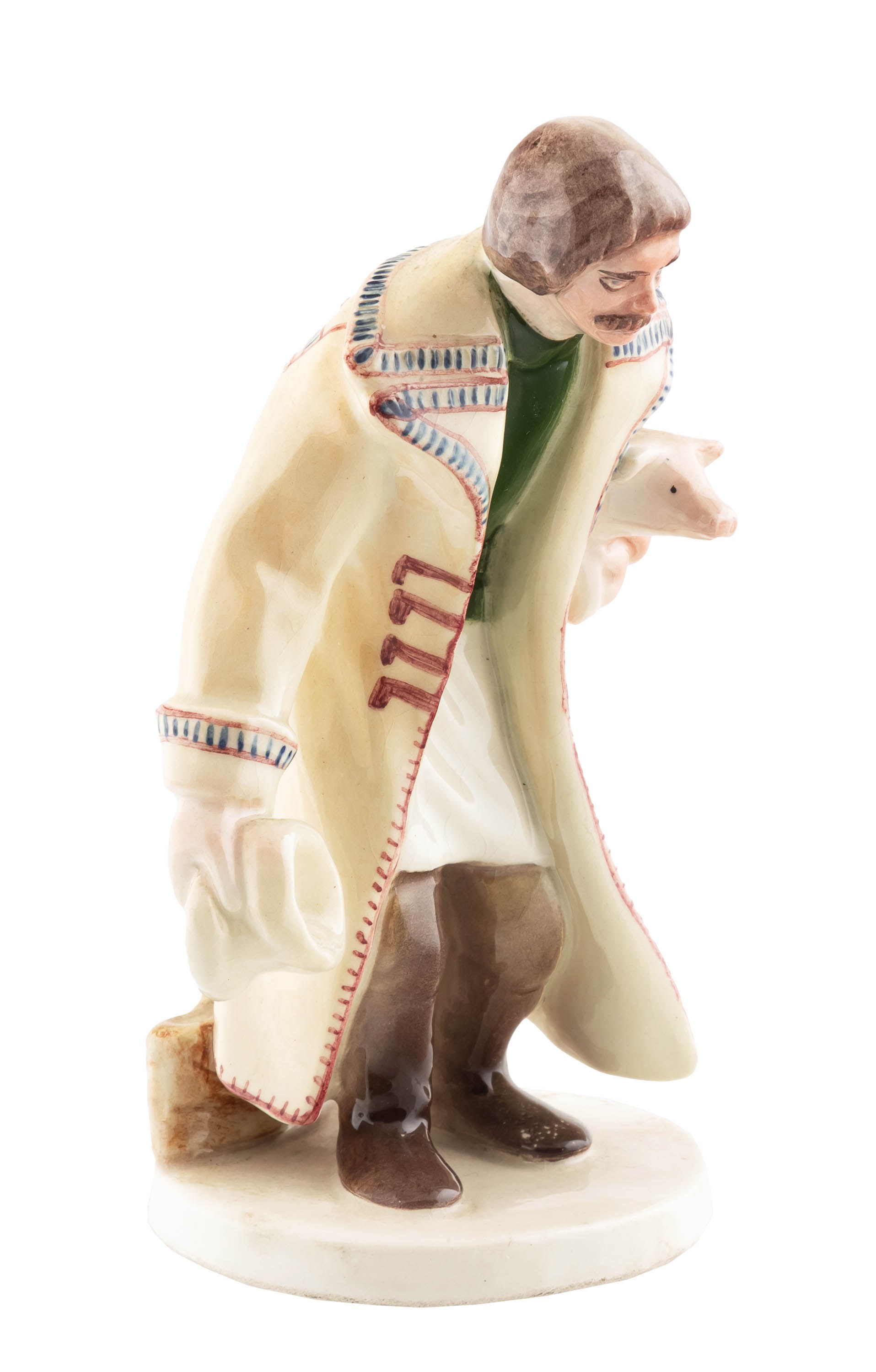 fajans, ręcznie malowany podszkliwnie, sygn. na spodzie wyciskiem w masie: Made in Poland (częściowo czytelne), w trójkącie litera P, 617/186, 6/3 | I, owal z literą P i herbem Rogala (częściowo czytelne), ubytek na cokole z tyłu.