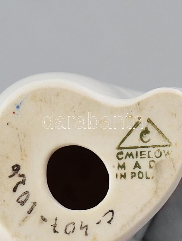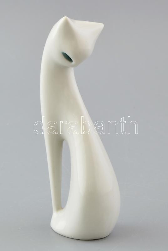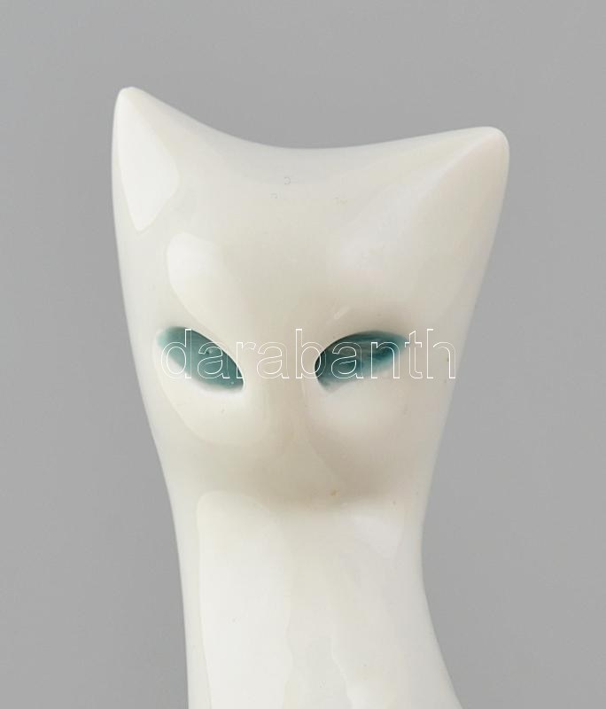 Ćmielów macska. Tervezte Mieczysław Naruszewicz (1923-2006), 1956. kézzel festett porcelán. Zakłady Porcelany Stołowej "Ćmielów" w Ćmielowie porcelán. m: 16,5 cm, alján gyári jelzés: "| ĆMIELÓW | MADE | IN POLAND" és: ' c-407-1026. Minimális kopásokkal.