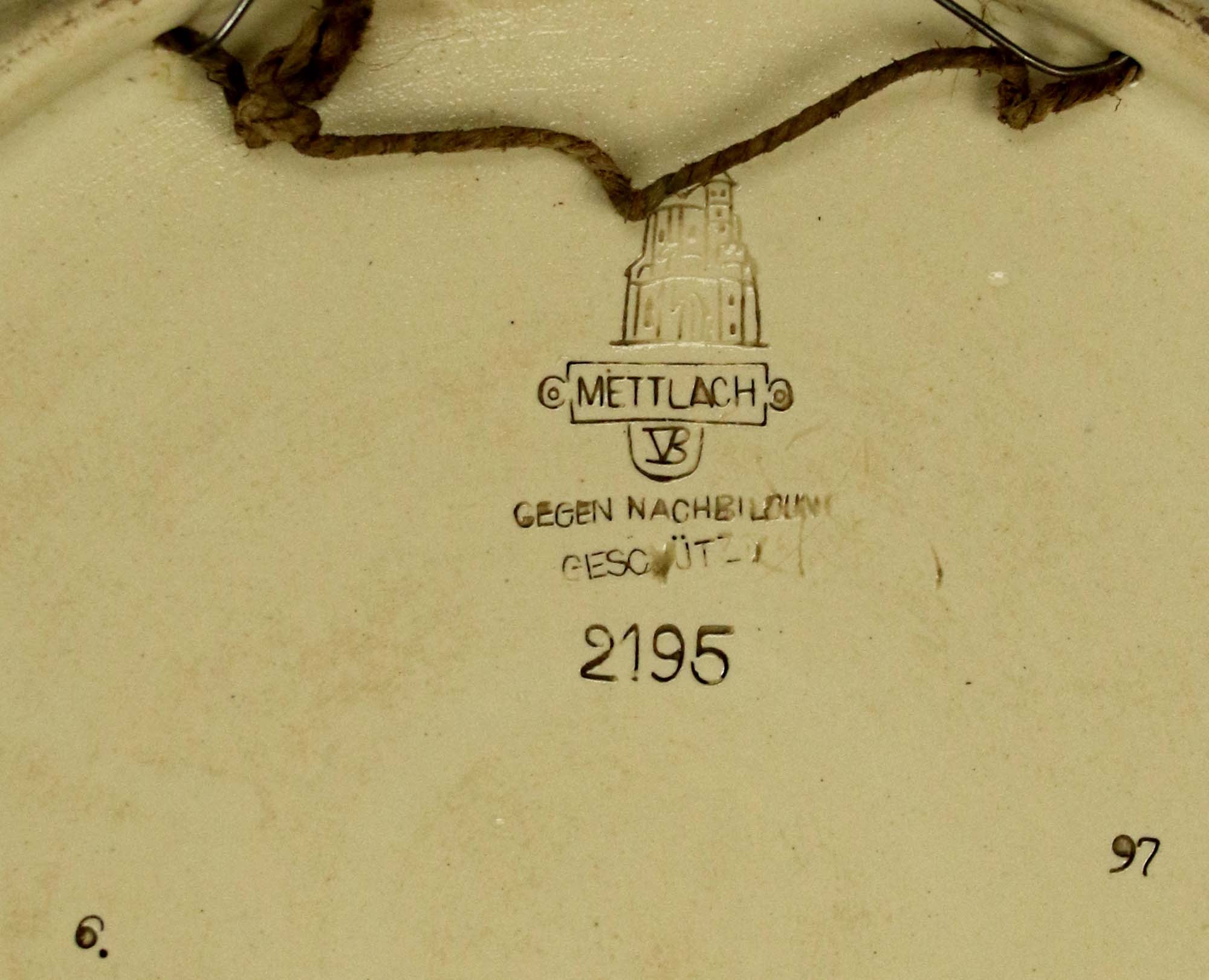 Sygnowany wyciskiem: zamek /METTLACH/, model: 2195, dat.: 97 (1897)