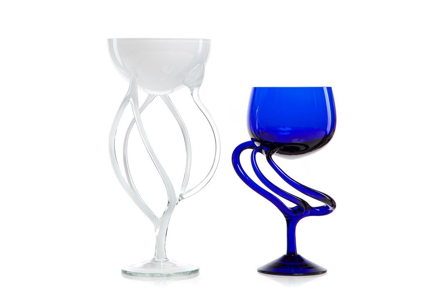 szkło barwione w masie, ręcznie formowane; wys. 21 cm i 26,8 cm