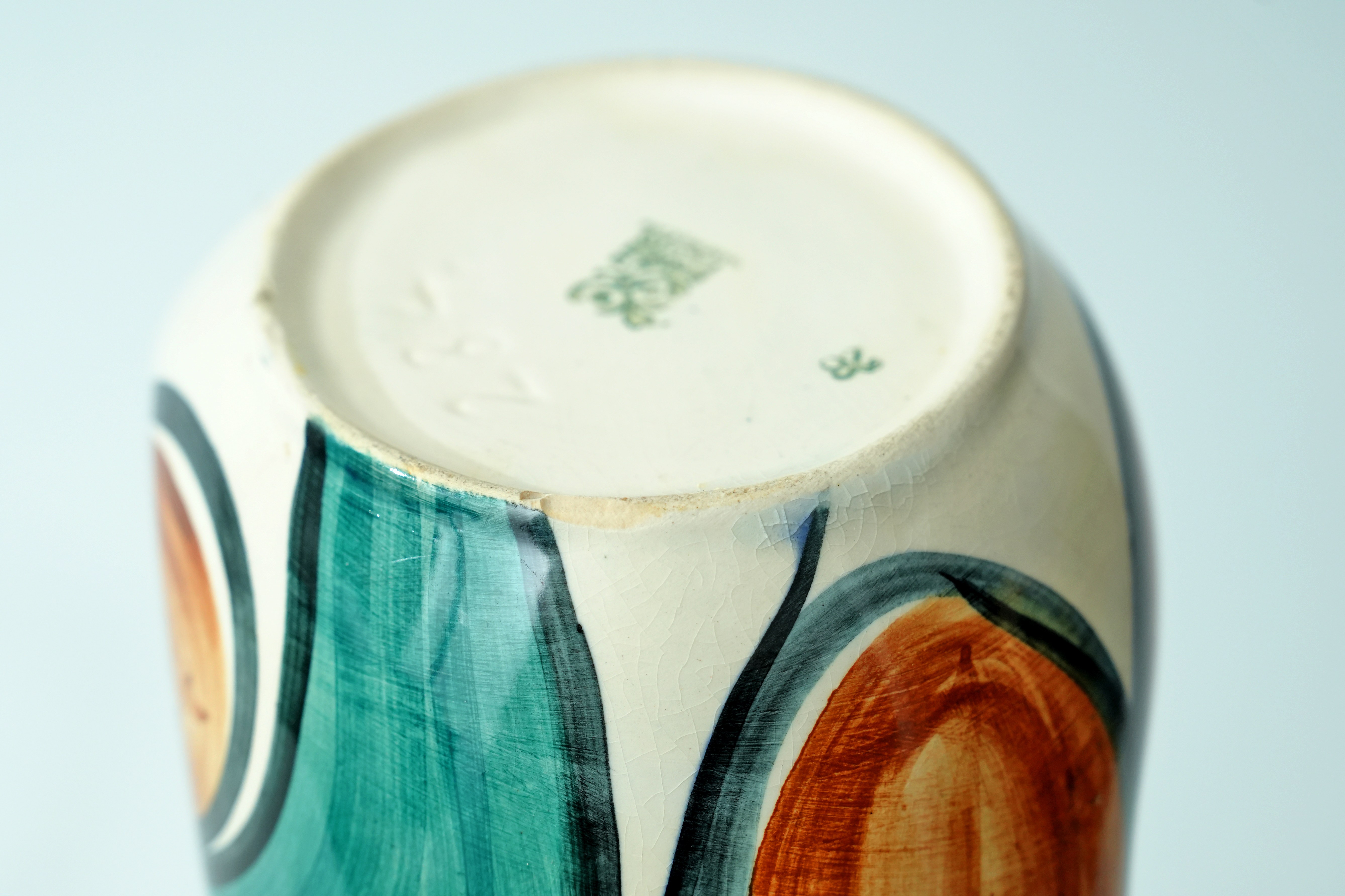 Stan bardzo dobry - ; niewielki odprysk na krawędzi podstawy wazonu.
