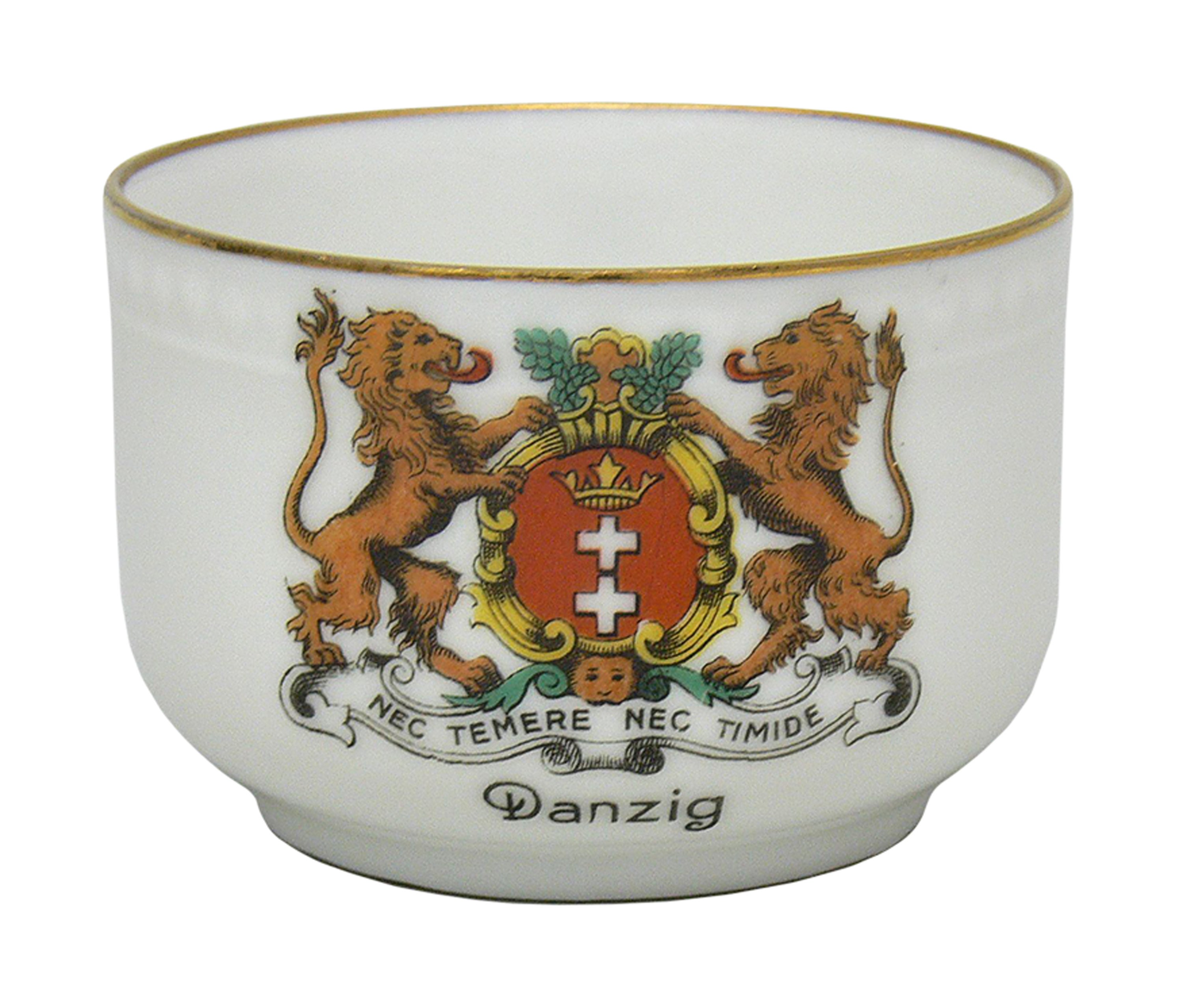 porcelana, złocenia, dekoracja w postaci herbu Gdańska; wys. 4,3 cm