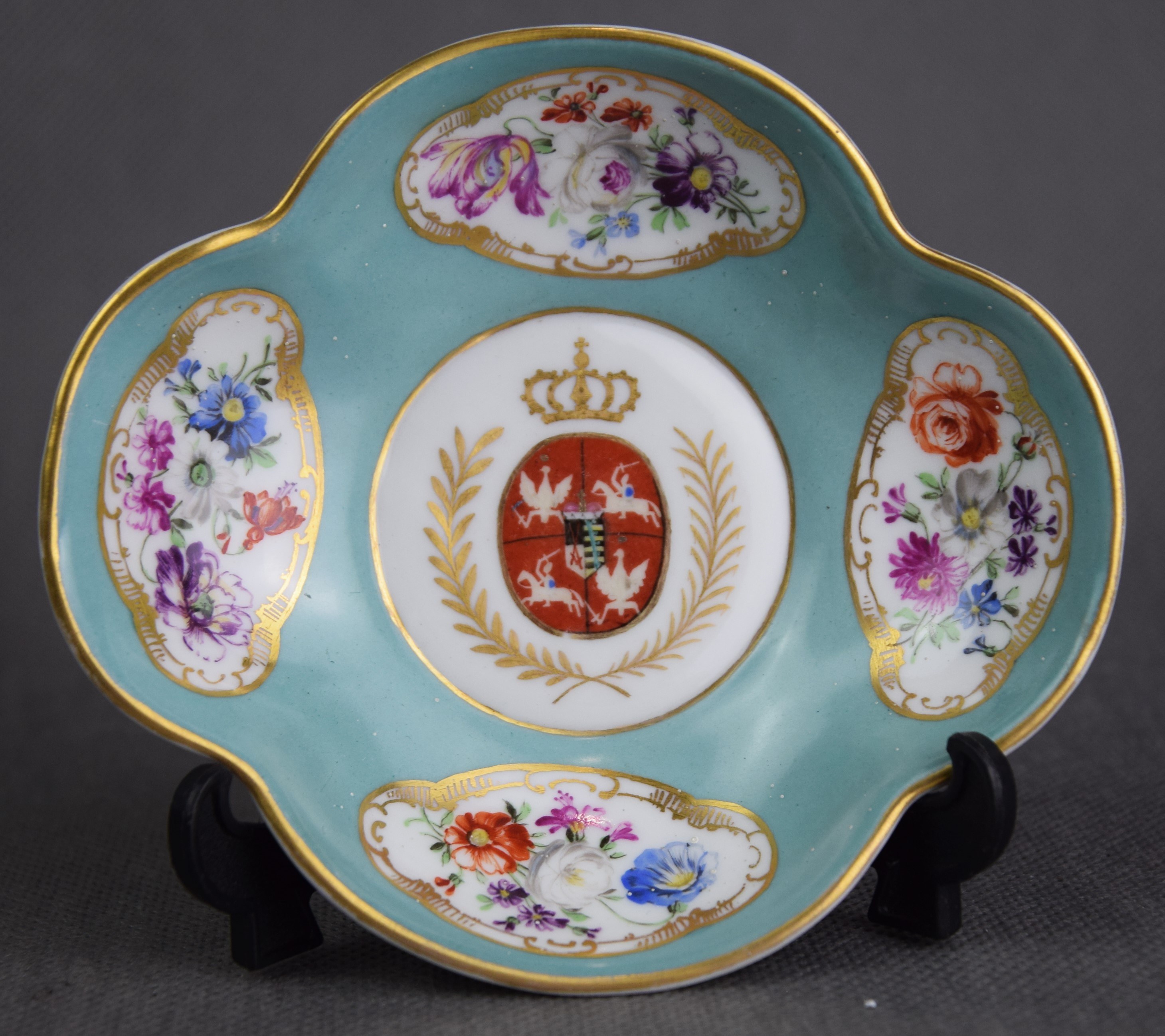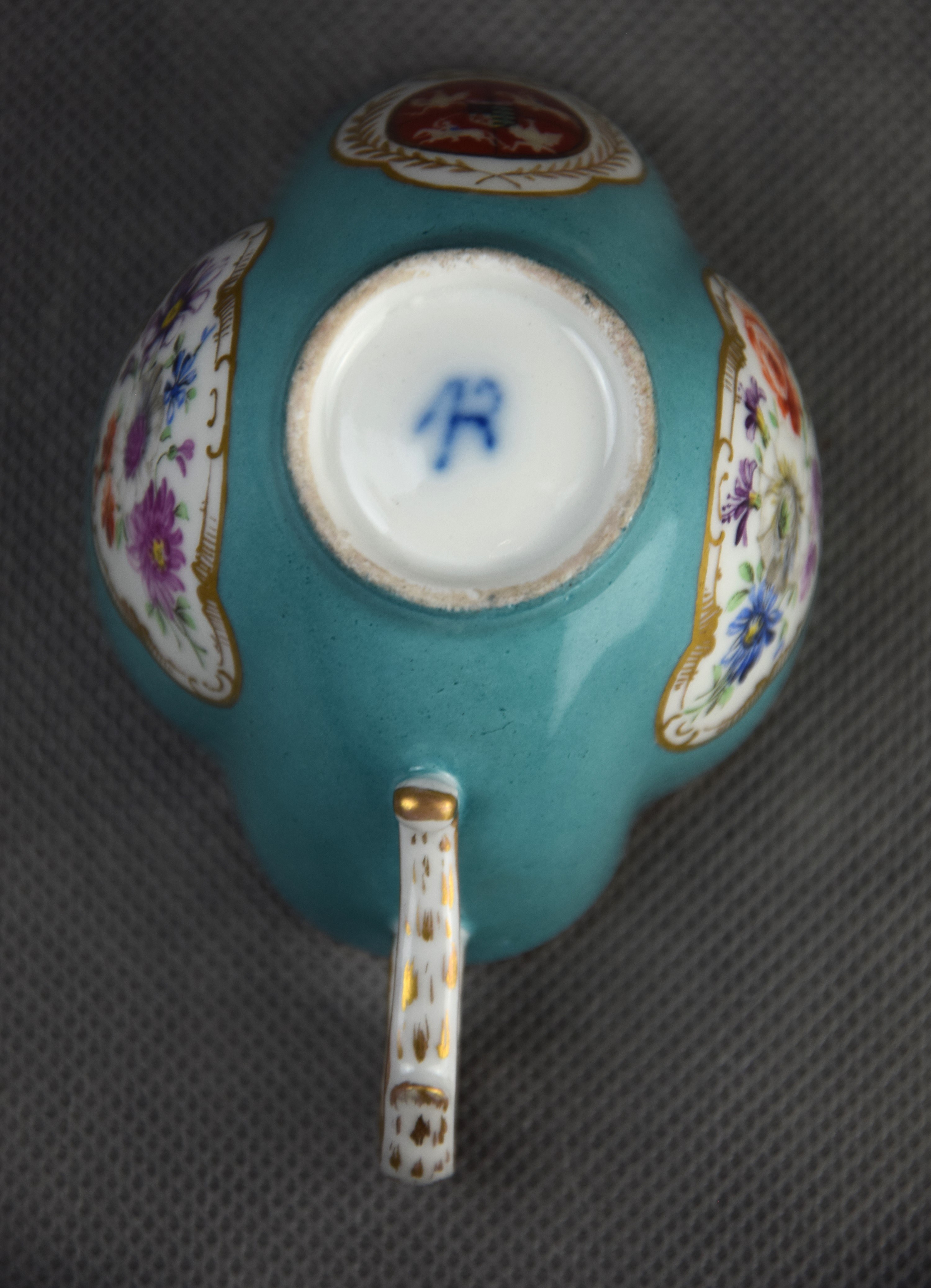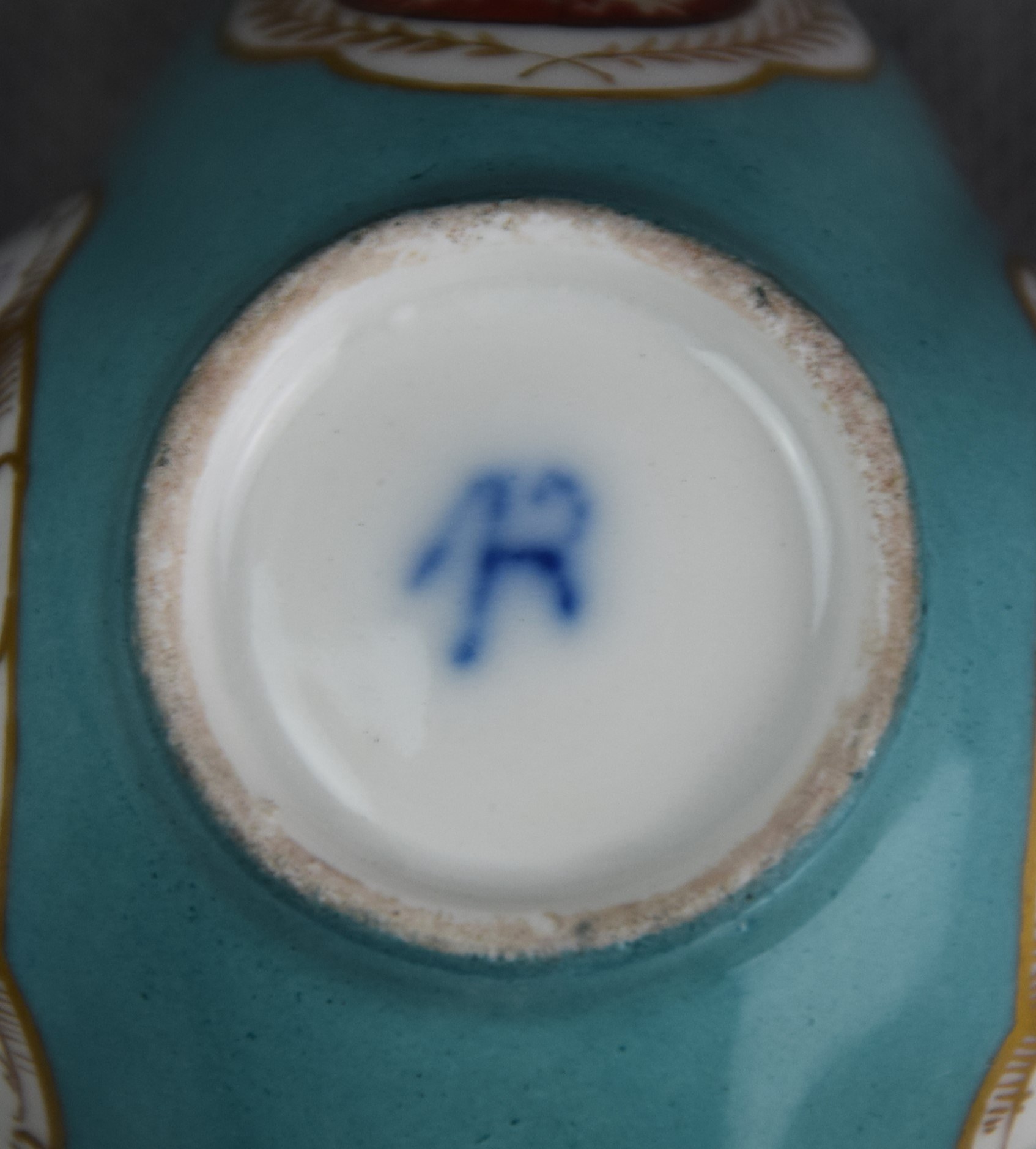 Sygnowana na spodzie kobaltem stylizowana sygnatura na królewski monogram AR stosowany w Miśni.