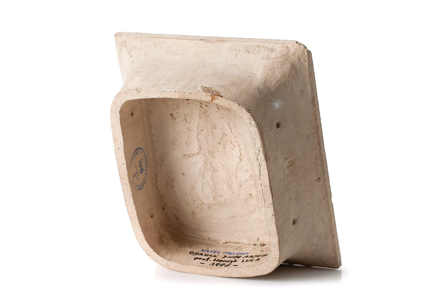 Opis wewnątrz: 'KAFEL PIECOWY | GDAŃSK DWÓR ARTUSA | prof. Henryk LULA | - 1996 -' podpis wtórny (data podarowania kafla)