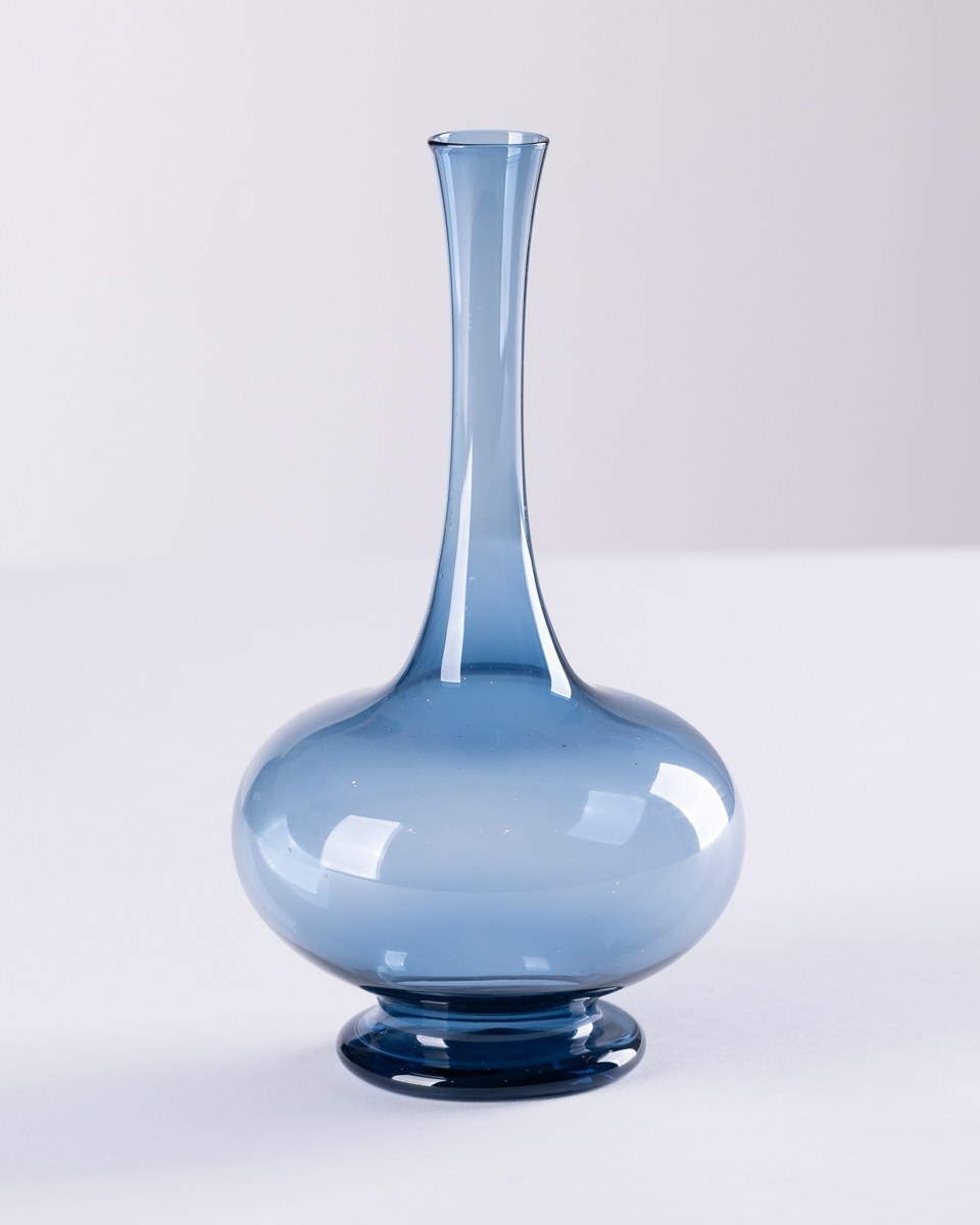 szkło dmuchane, ręcznie formowane, barwione w masie, wys. 19 cm, śr. wlewu 2,5 cm, śr. brzuśca 11 cm
