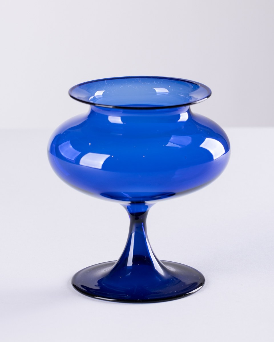 szkło dmuchane, ręcznie formowane, barwione w masie, wys. 13 cm, śr. wlewu 9 cm, śr. brzuśca 12 cm