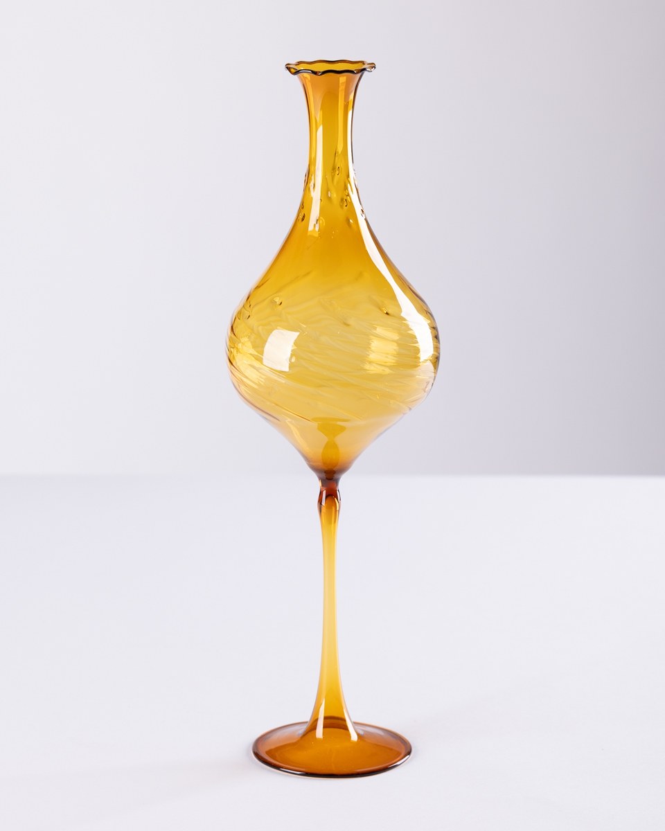 szkło dmuchane, ręcznie formowane, barwione w masie, wys. 31,5 cm, śr. wlewu 4 cm, sr. brzuśca 10 cm
