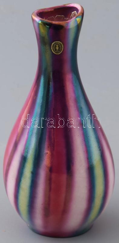 Iparművészeti Vállalat irizáló mázas váza, jelzett, m: 21,5 cm