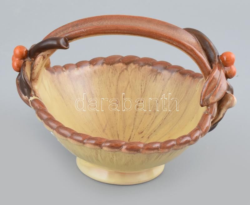 Jelzés nélkül: Kerámia kosár. Mázas kerámia Hibátlan. d: 17 cm