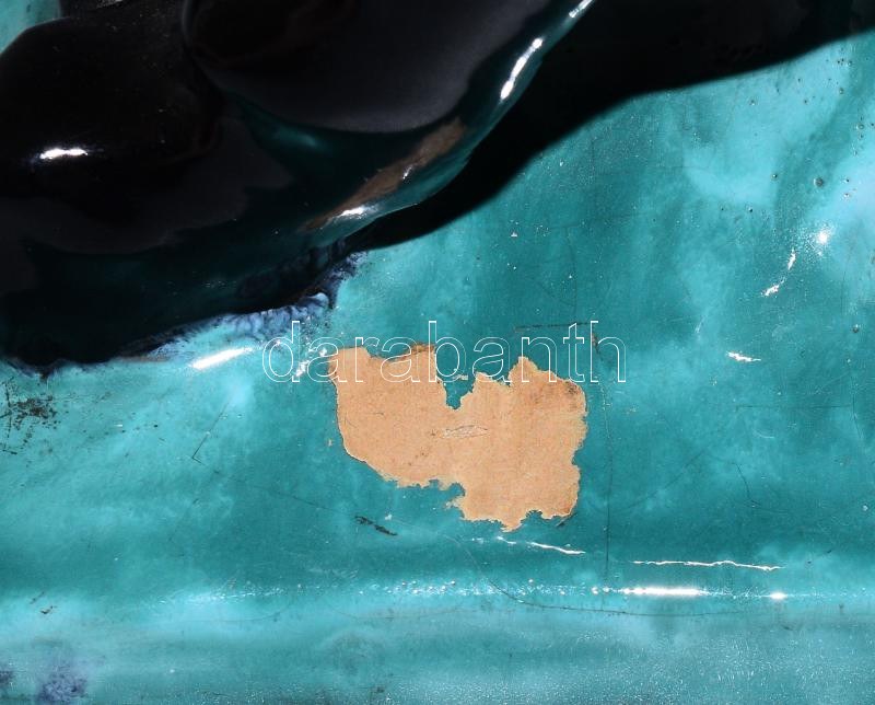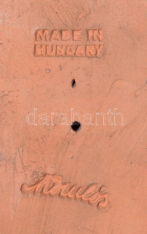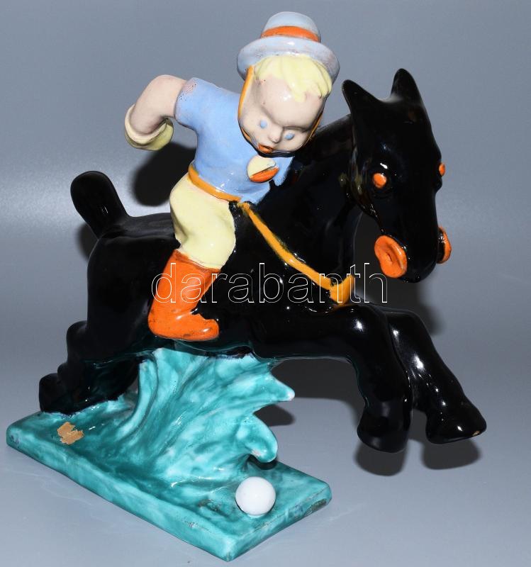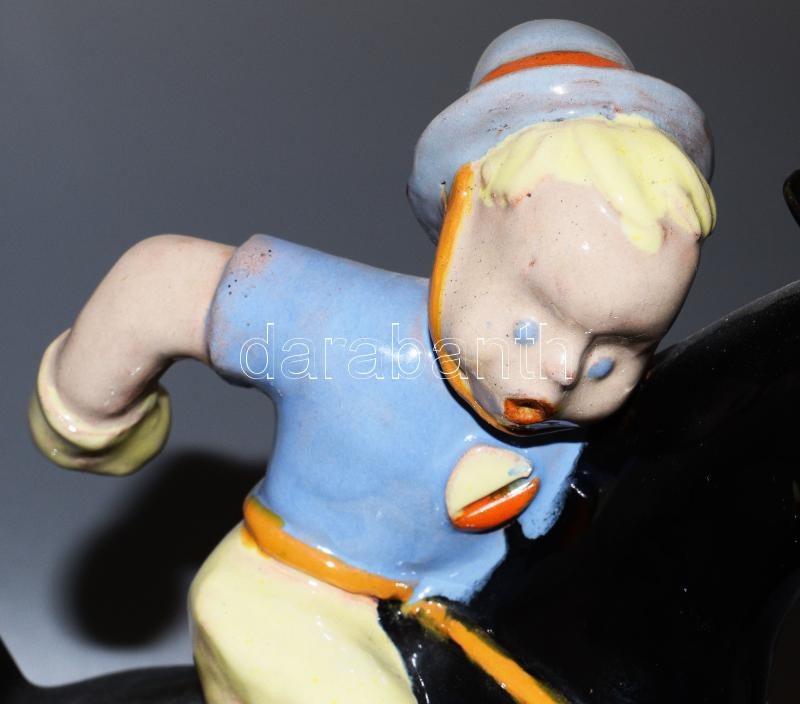 Komlós Zsoké. Mázas kerámia, készült a Komlós testvérek tervei alapján. Jelzett, alján gyári hibákkal, zsinórozása nélkül, mázhibával, 26x25 cm /// Komlós Jockey. Glazed ceramic, made after the designs of the Komlós brothers. Marked, with factory flaws on the base, without cord, with glaze defect, 26x25 cm