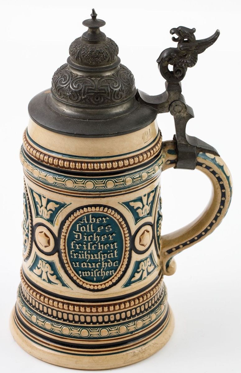 Fajans, farby podszkliwne, cyna, wys. 22,5 cm, śr. 11 cm