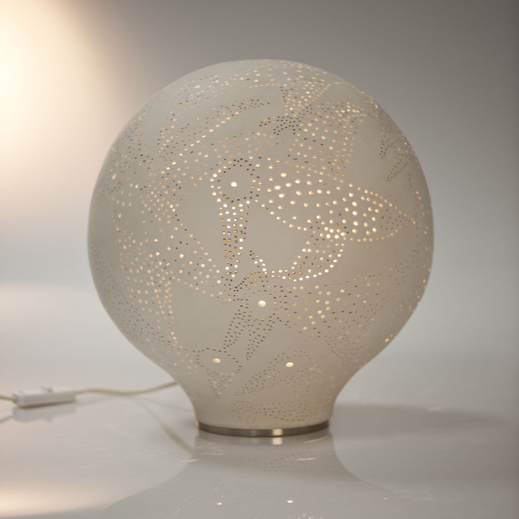 Lampa porcelanowa nieszkliwiona, formowana z masy lejnej, ręcznie ażurowana.