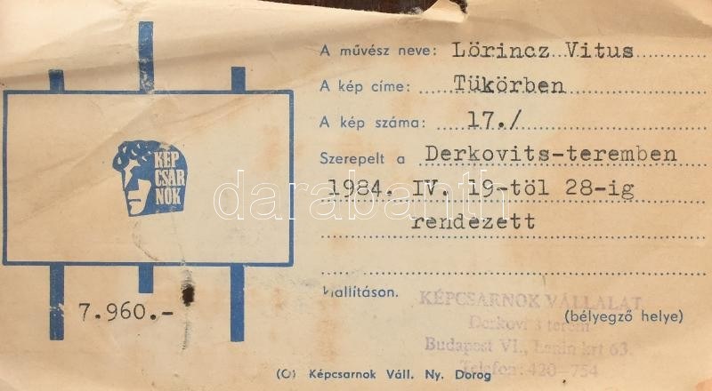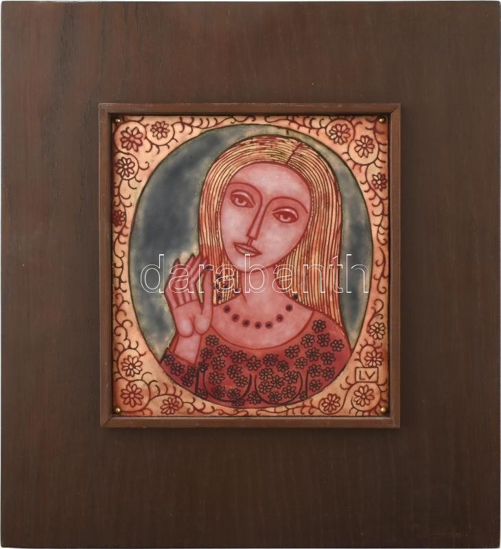 Lőrincz Vitus (1933-): "Tükörben". Tűzzománc. Jelzett. Hátoldalán címkén autográf felirattal és Képcsarnok Vállalat raglapjával, mely szerint szerepelt a művész 1984-ben, a Derkovits Teremben rendezett egyéni kiállításán. 19,5x18 cm. Fa keretben.