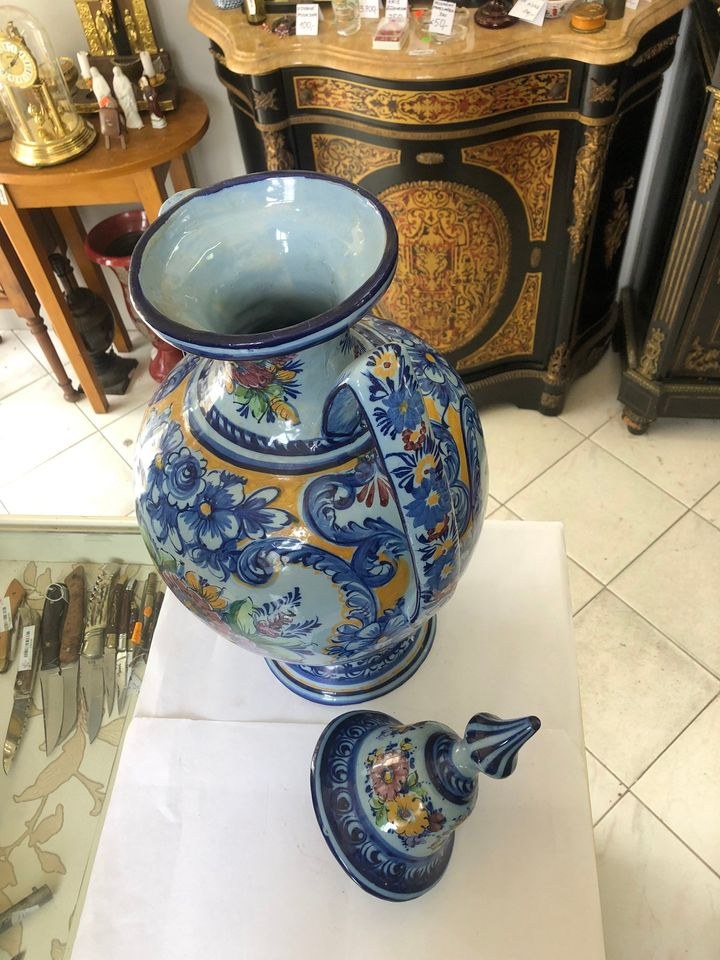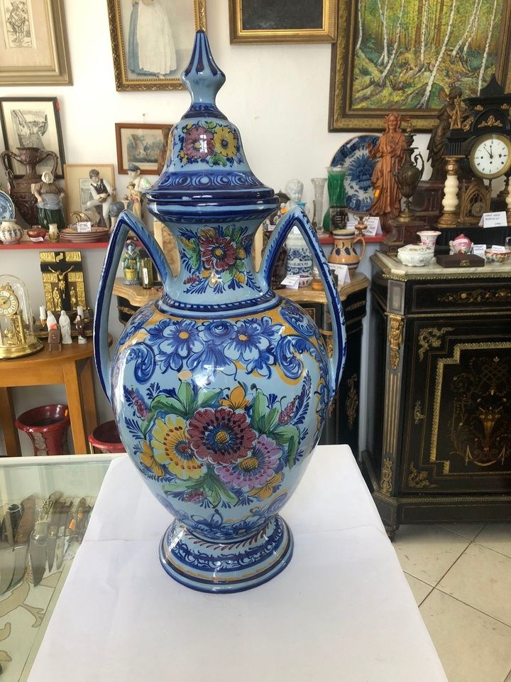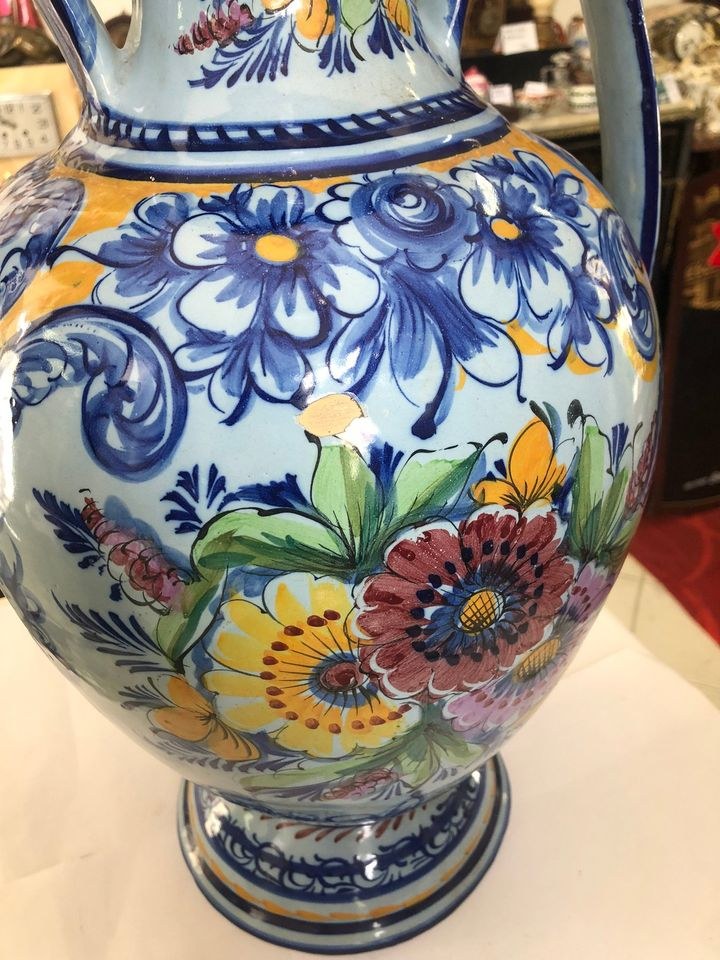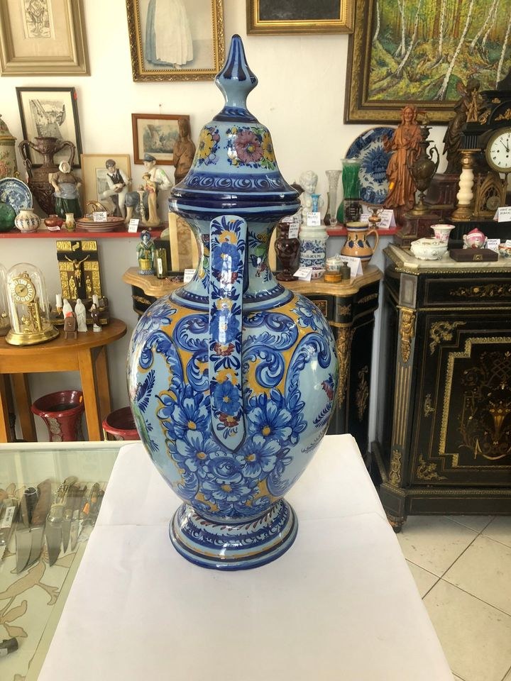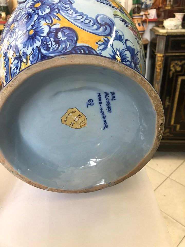 Krásná, modrá, kameninová amfora, ručně malovaná, Portugalsko, 1969, Alcobaca