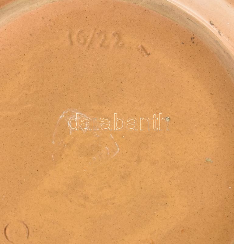 Népi tányér. Mázas kerámia, kézzel festett, jelzett, hibátlan d: 22 cm