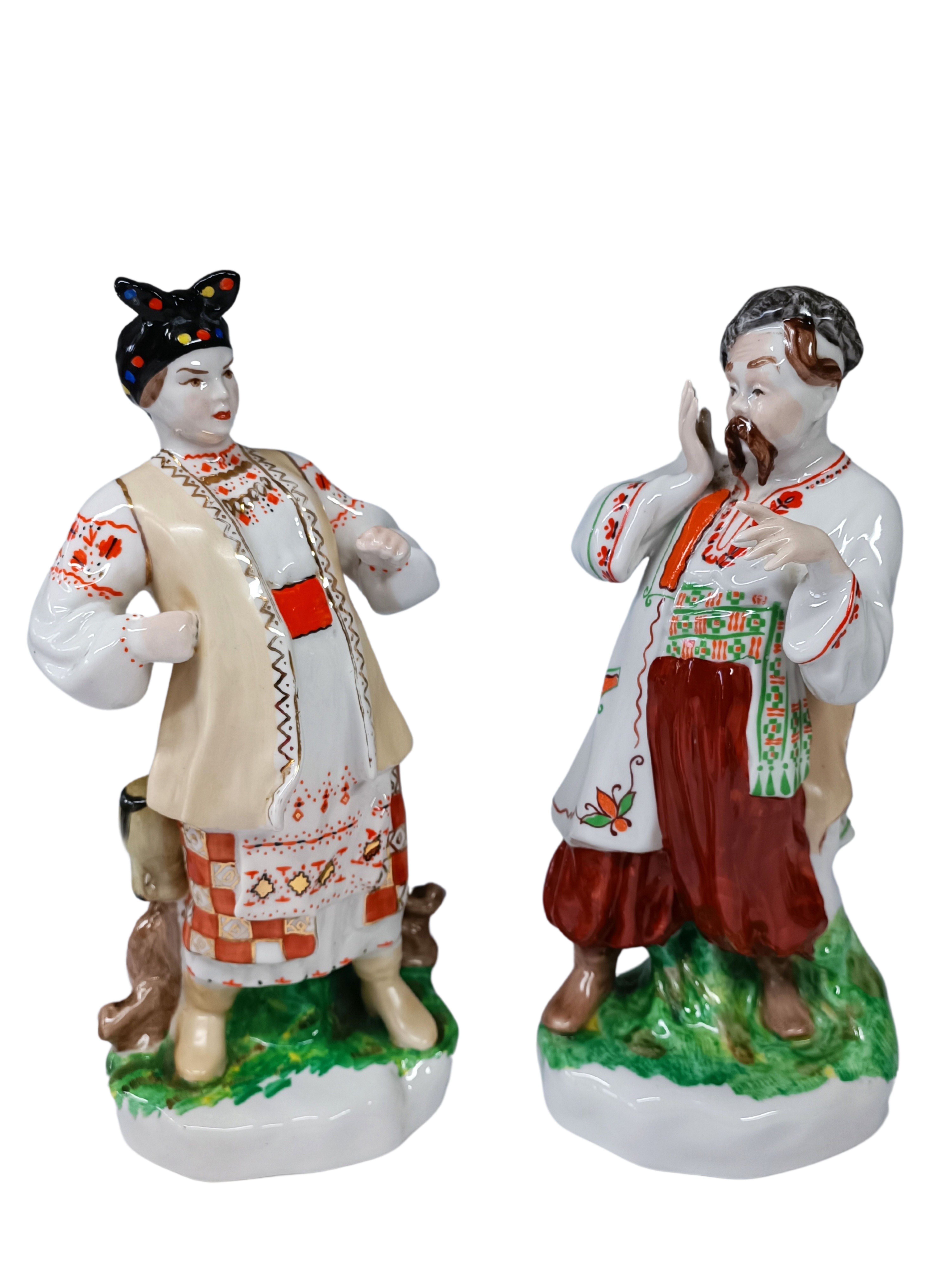 Para figurek przedstawiająca Odarkę i Karasa, bohaterów opery "Zaporożec za Dunajem", autorstwa Semena Hułaka-Artemowskiego.