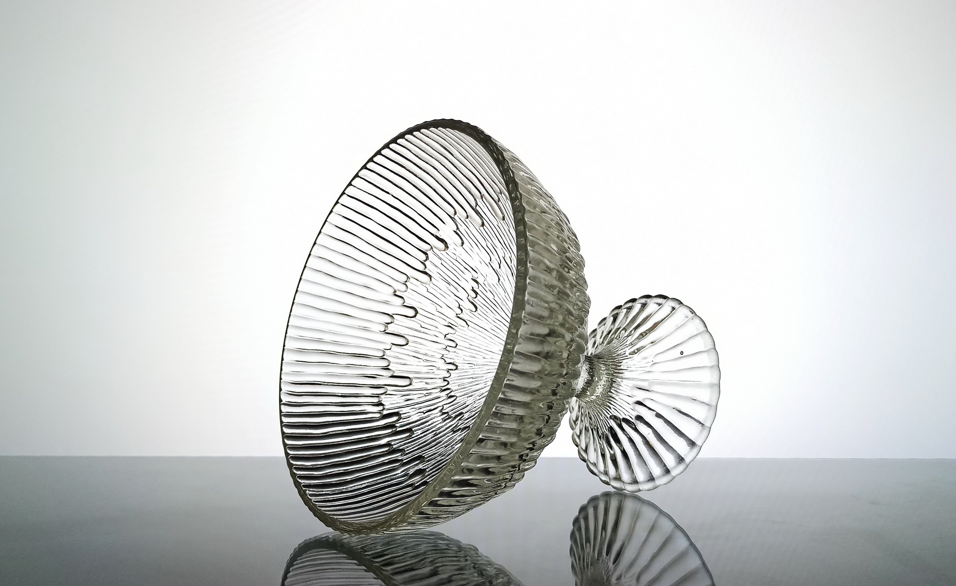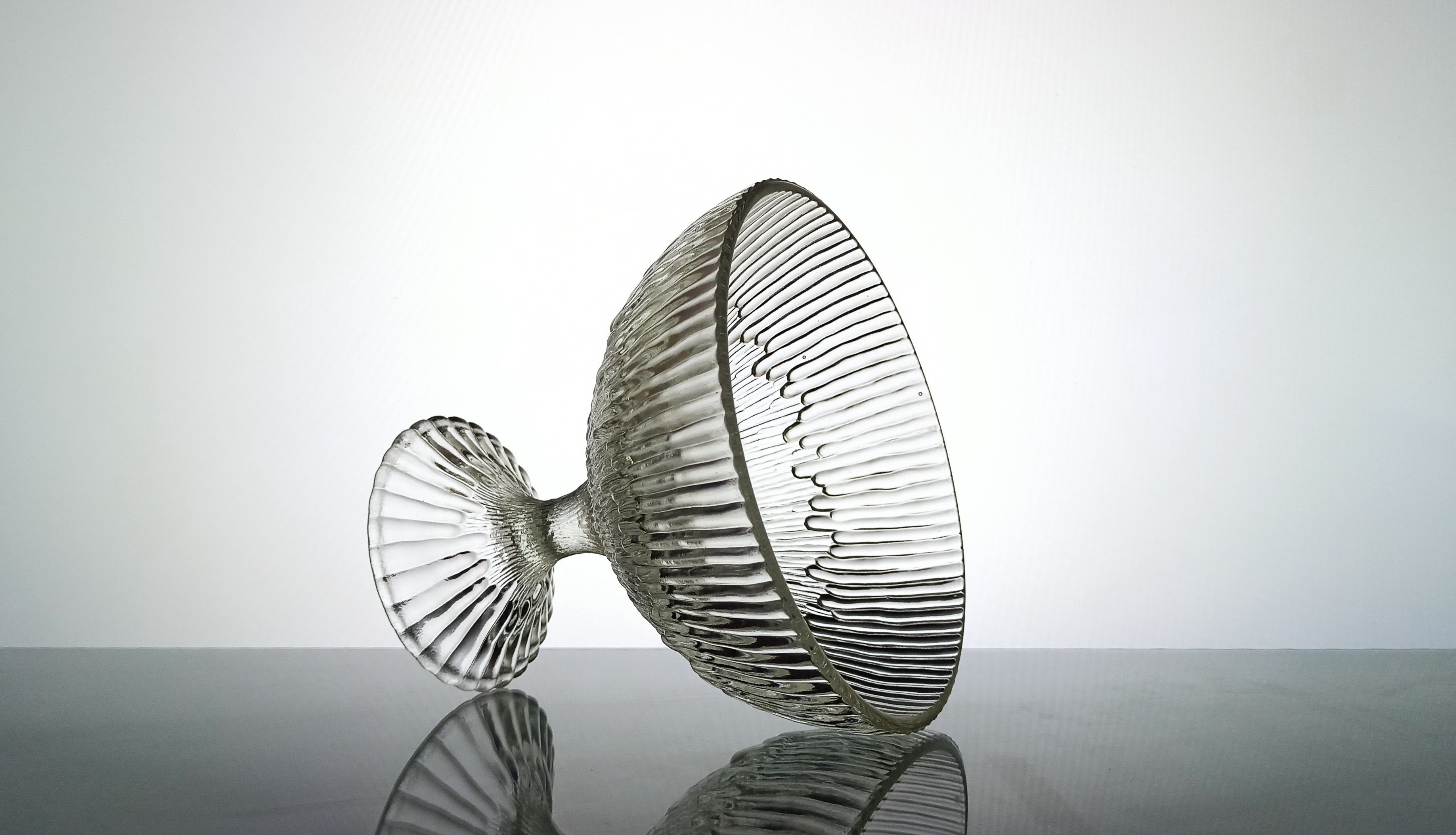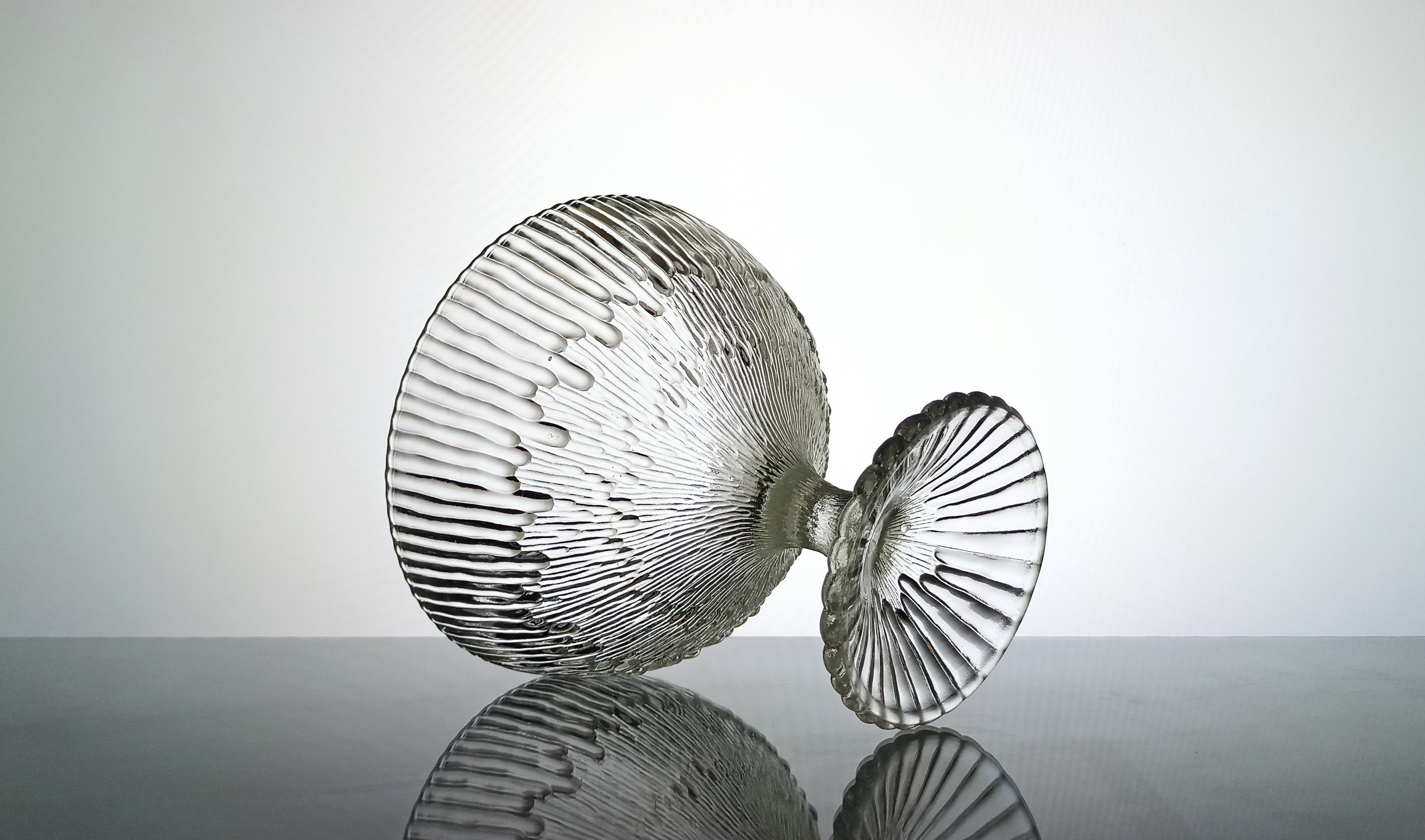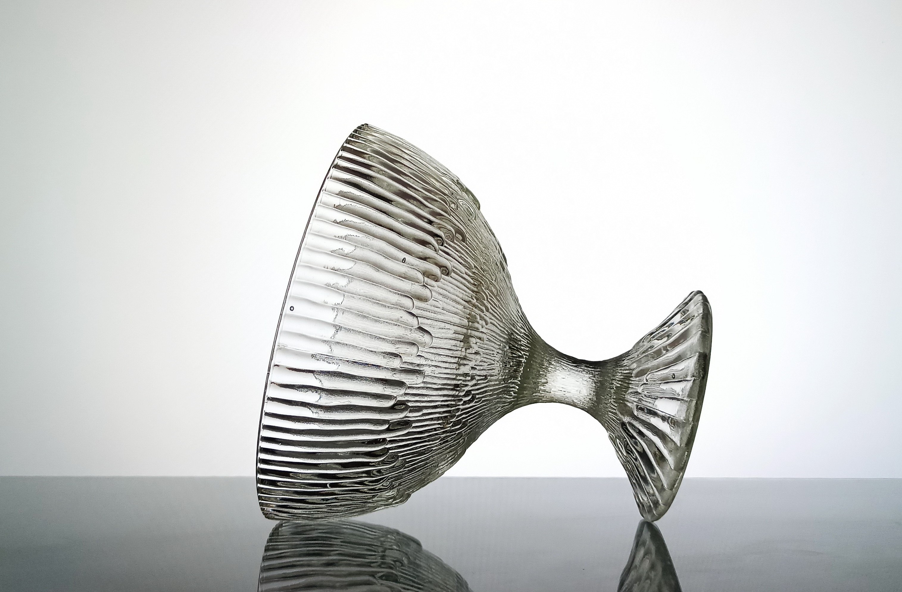 szkło prasowane, bezbarwne, wysokość 16cm, średnica 17,5cm