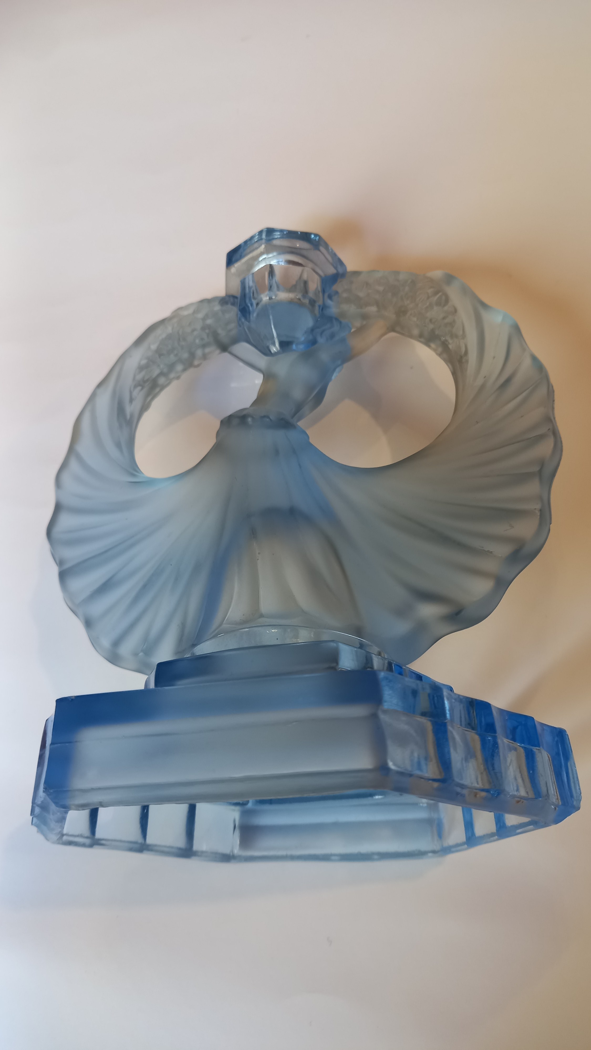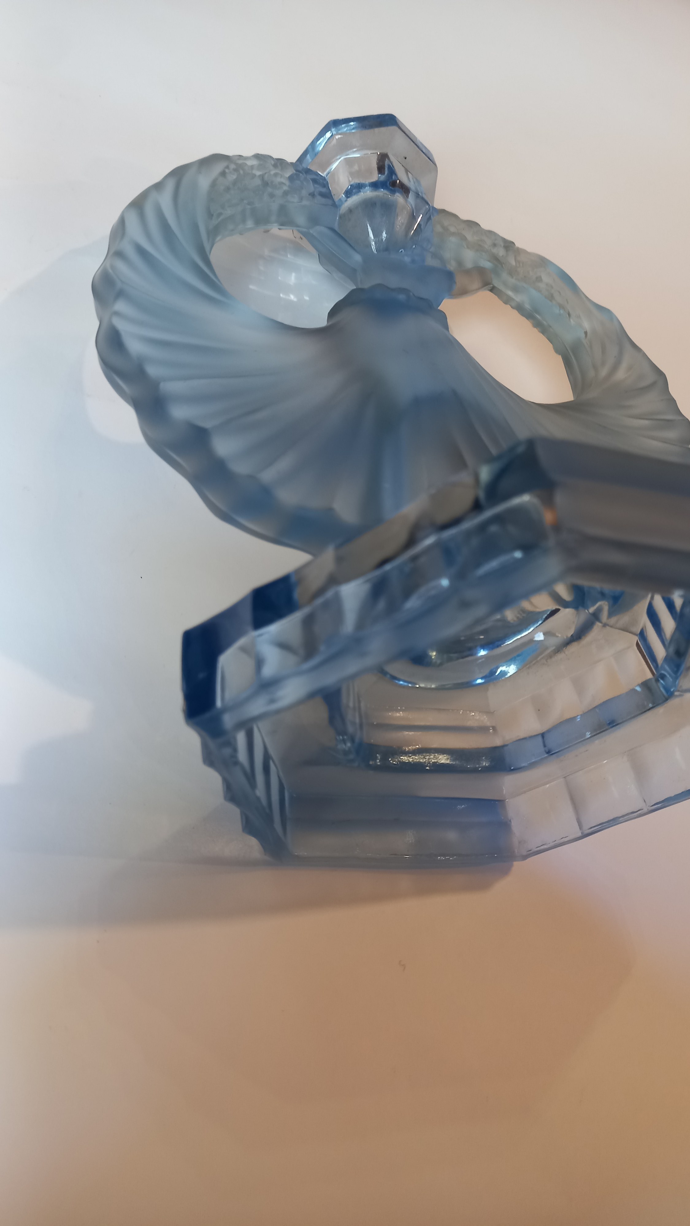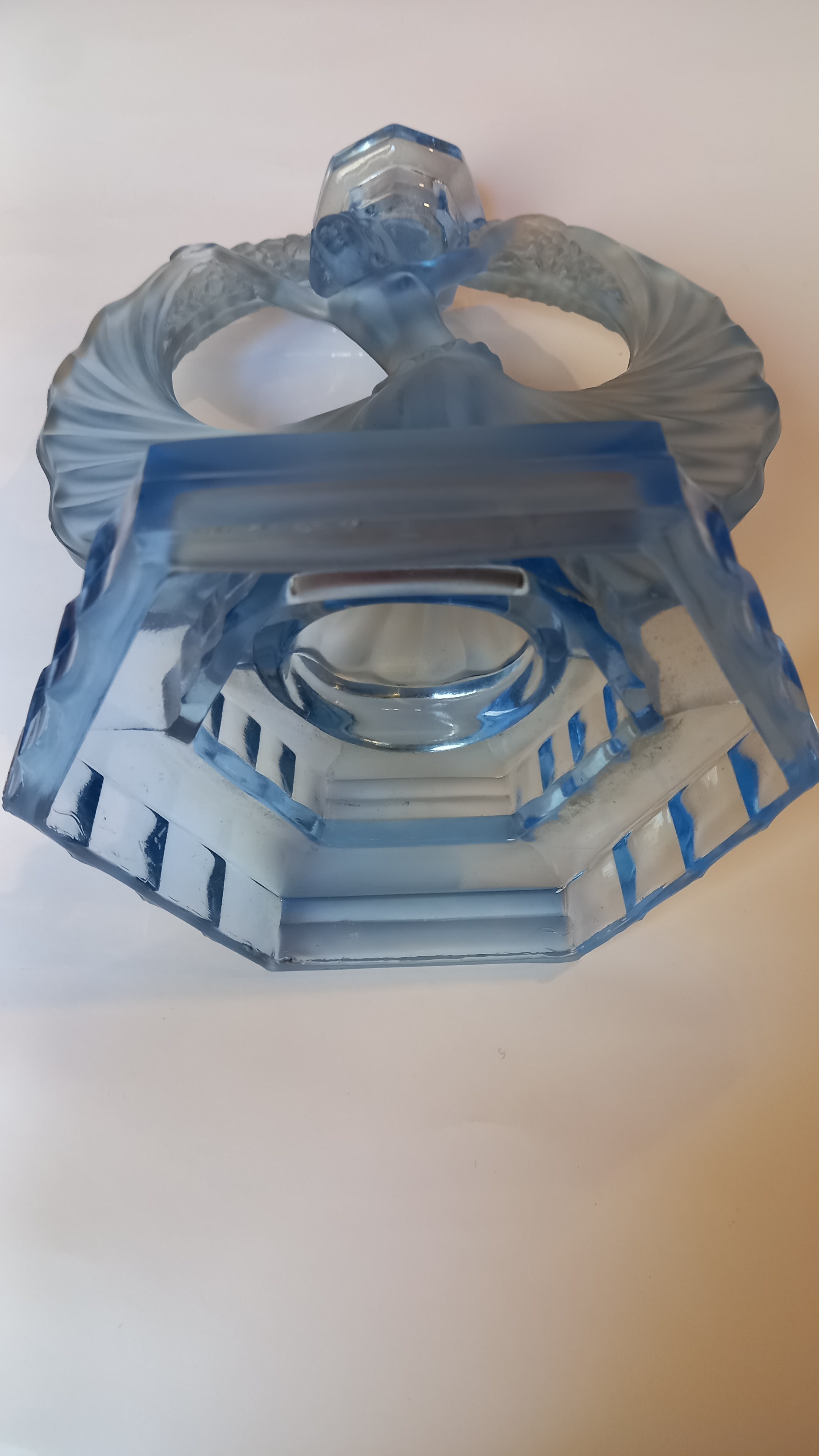 Szkło niebieskie , prasowane , barwione w masie , miejscowo matowione , brak uszkodzeń mechanicznych.