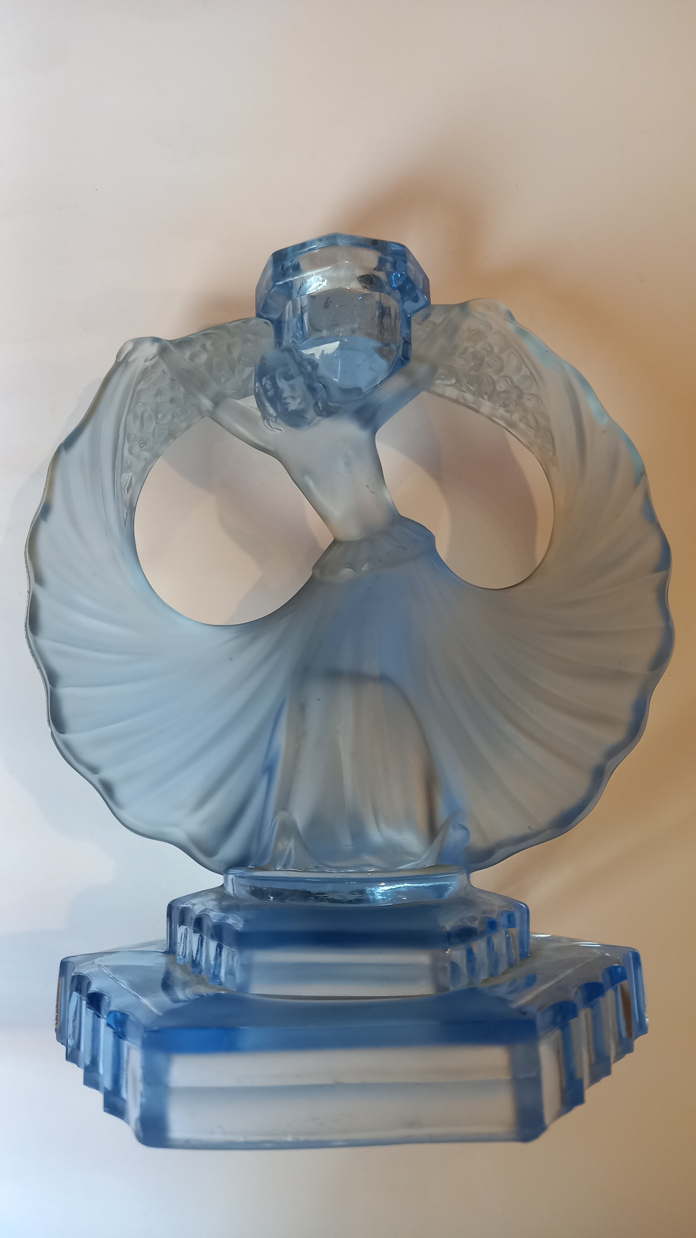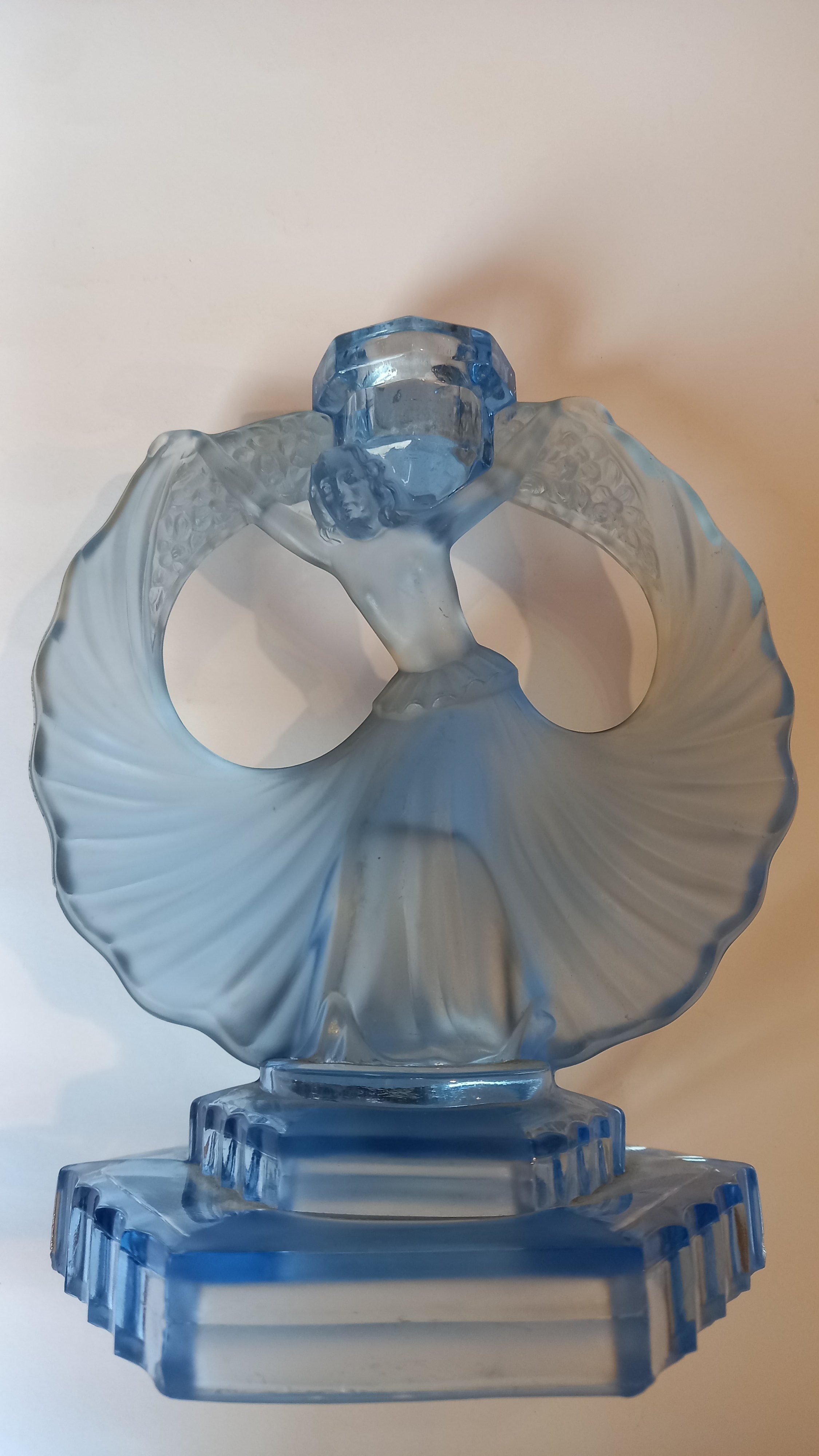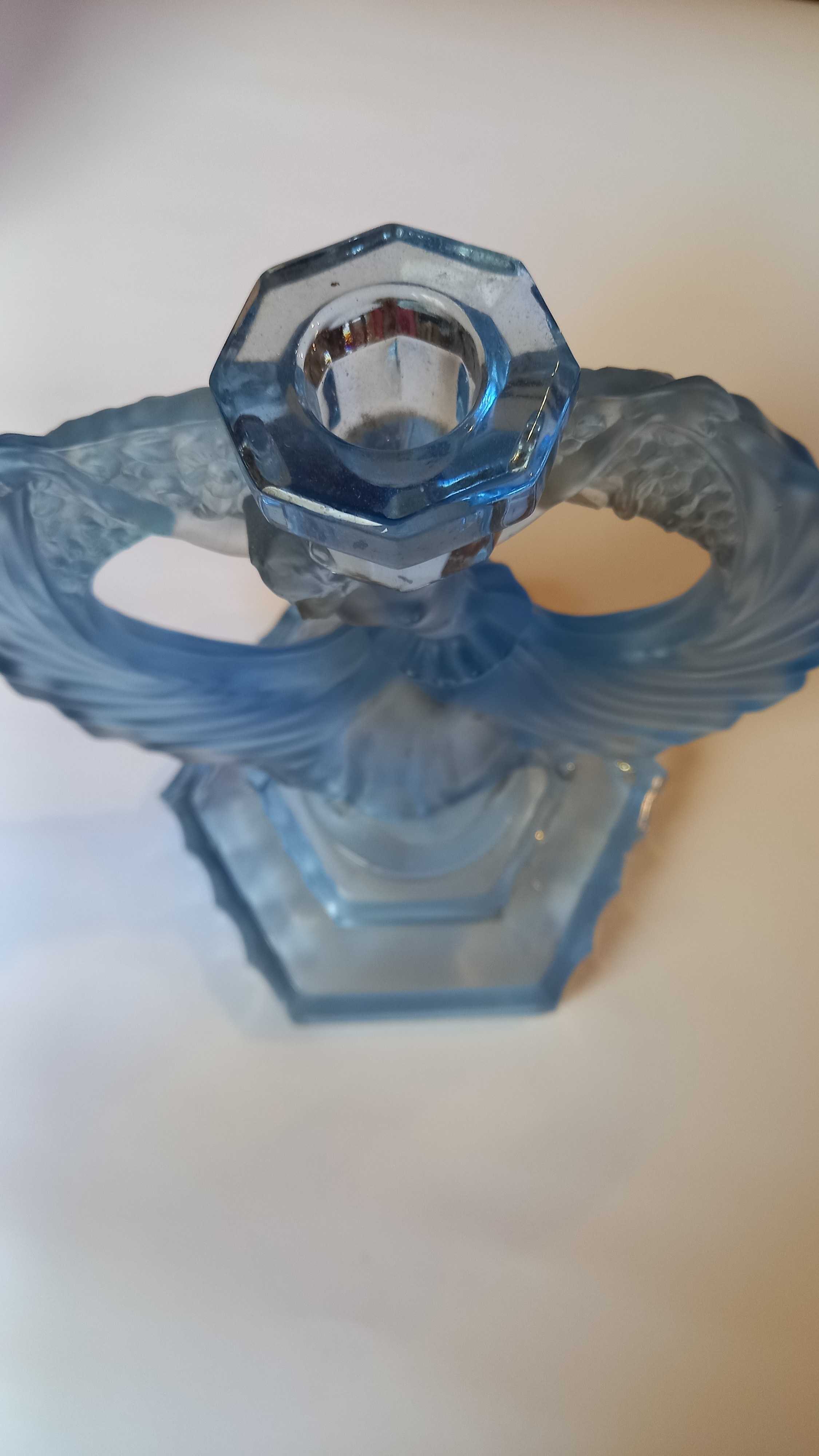 Szkło niebieskie , prasowane , barwione w masie , miejscowo matowione , brak uszkodzeń mechanicznych.