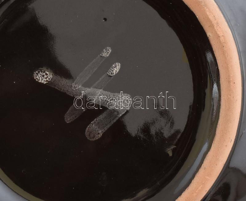 VK jelzéssel: Mázas kerámia tál. Kézzel festett, jelzett, hibátlan 20 cm